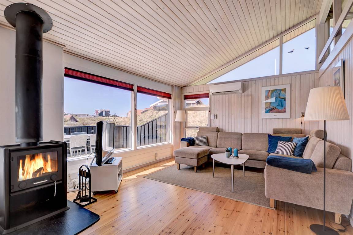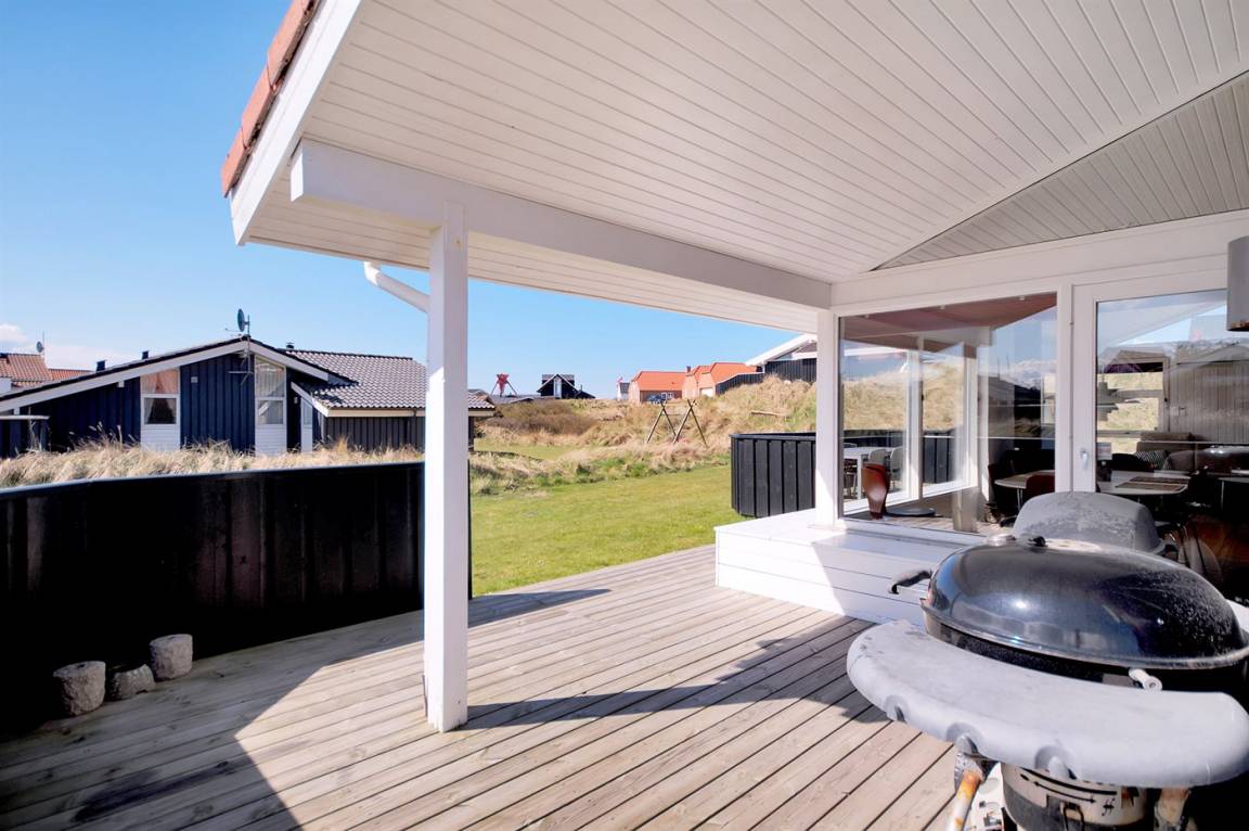 Unmittelbar außerhalb dem Zentrum von Blokhus liegt dieses attraktive Ferienhaus in schöner Umgebung dicht an der Nordsee. Das Haus ist besonders gut eingerichtet und daher auch für 2 Familien geeignet. Zum Haus gehören 3 Terrassen, alle mit Gartenmöbeln. Eine Sportkarre steht zur Verfügung.