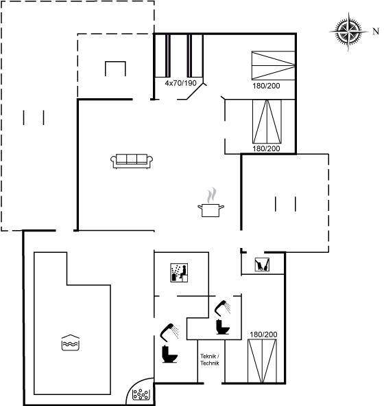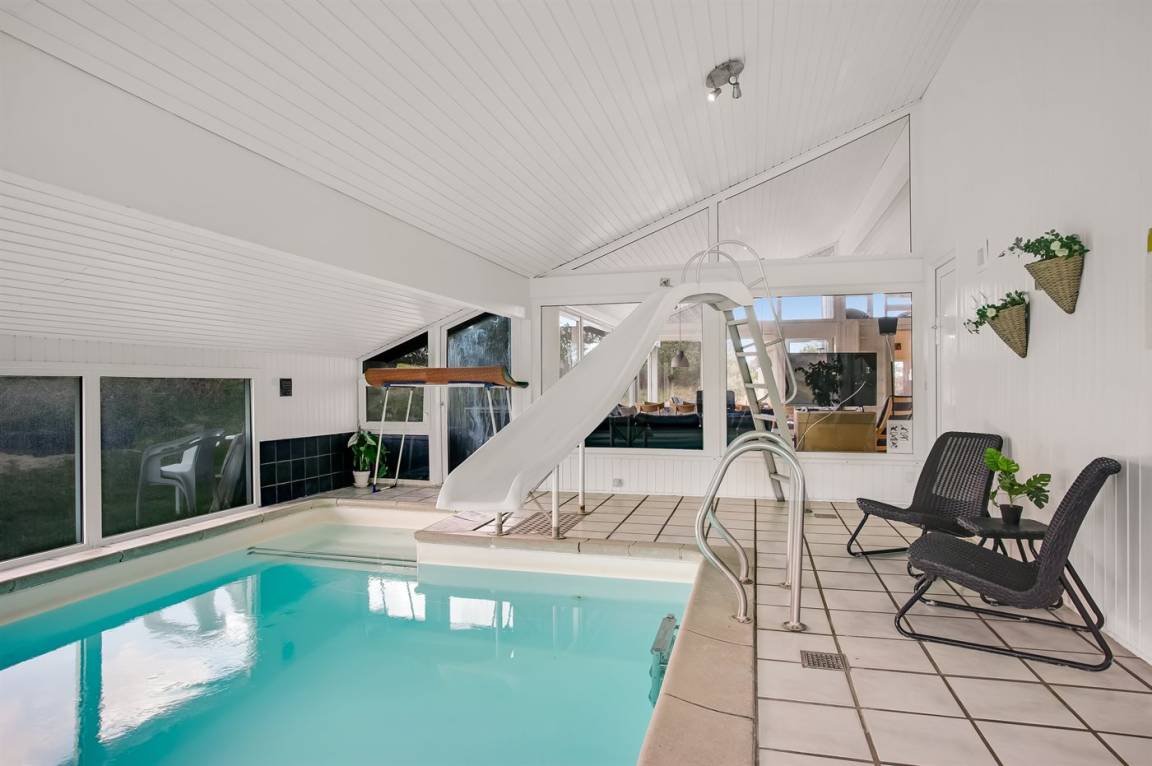 Herzlich willkommen in diesem geräumigen und kinderfreundlichen Ferienhaus mit Swimmingpool, Whirlpool und Sauna – hier kann sich die ganze Familie entspannen und einen Urlaub in schöner Umgebung genießen. Das Haus ist geräumig und liegt auf einem 2500 m² großen Naturgrundstück, in der Nähe vom Ferienort Blokhus, dem Freizeitpark "Fårup Sommerland" und der Nordsee.