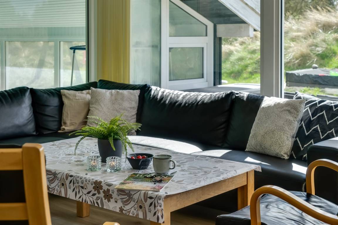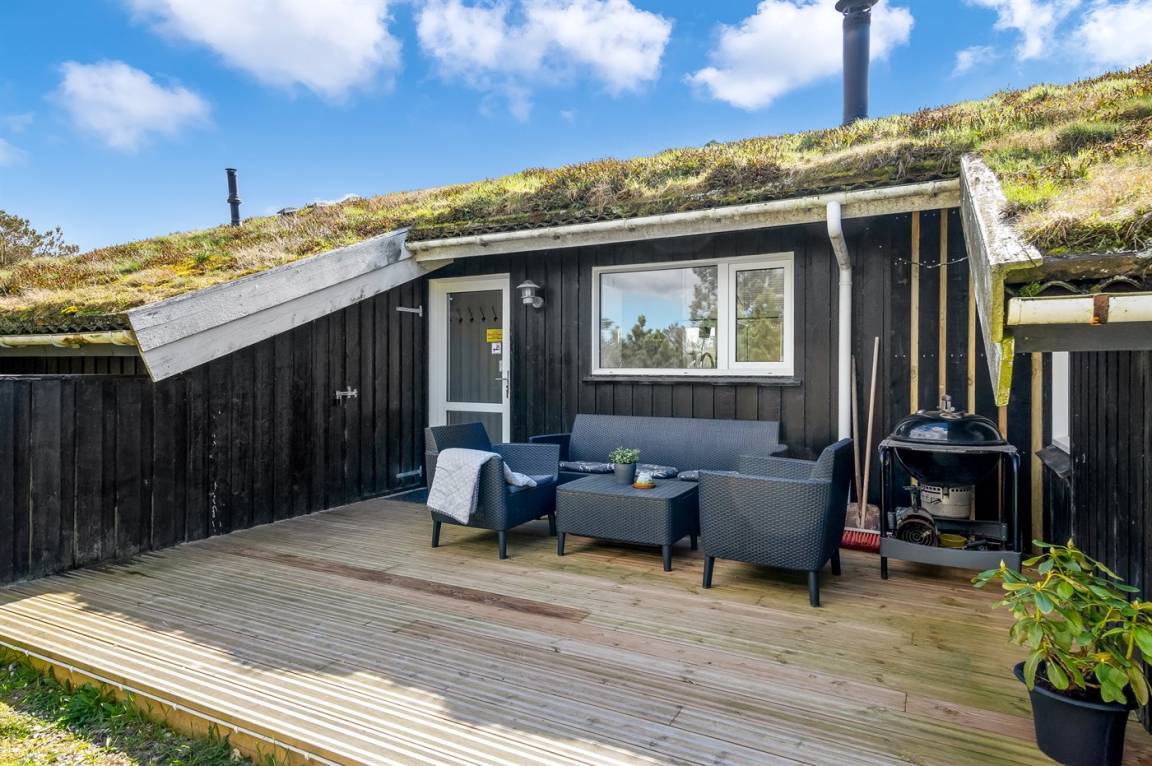 Das große, hügelige Grundstück ist abgeschirmt, und das Ferienhaus liegt auf einem kleinen, ungestörten fleckchen Erde. Daher gibt es gute Möglichkeiten auf den teilweise überdachten Terrassen eine vor dem Wind geschützte Ecke zu finden. Genieße Stunden im Freien mit einem Kreuzworträtsel, einer Tasse Kaffee oder entspanne dich ganz einfach unter den wärmenden Strahlen der Sonne. Es gibt gute Gartenmöbel, Liegestühle und einen Grill. Auf dem Grundstück, auf dem verschiedene Spielgeräte vorhanden sind, können sich die Kinder so richtig austoben.