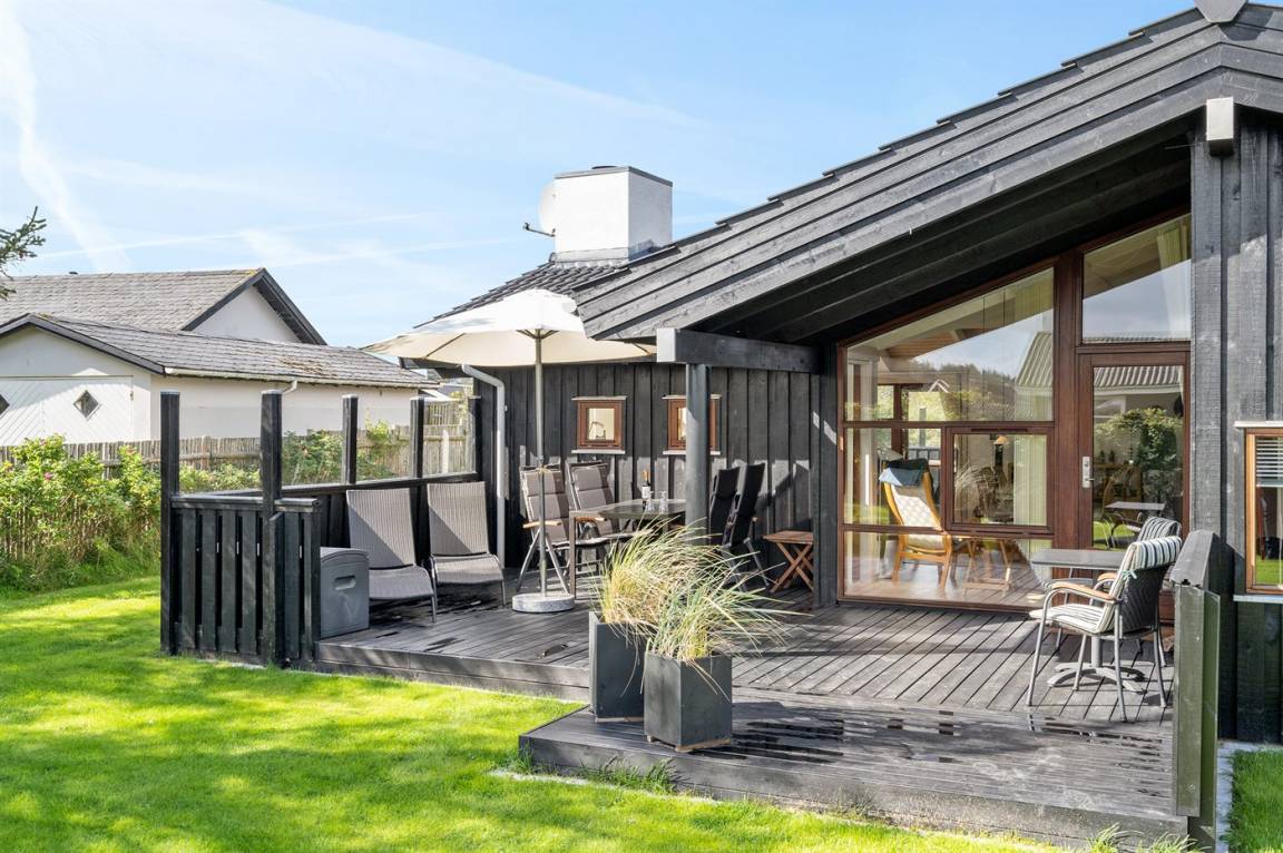 Ein besonders schönes Ferienhaus mit einer zentralen Lage - dicht an der Ortsmitte vom Badeort Blokhus, aber dennoch in ruhiger Umgebung. Einer der besten Badestrände Dänemarks liegt nur 200 m vom Haus entfernt.