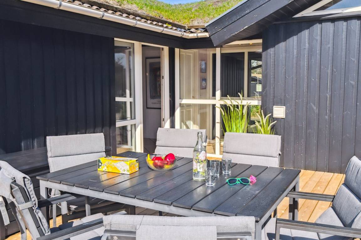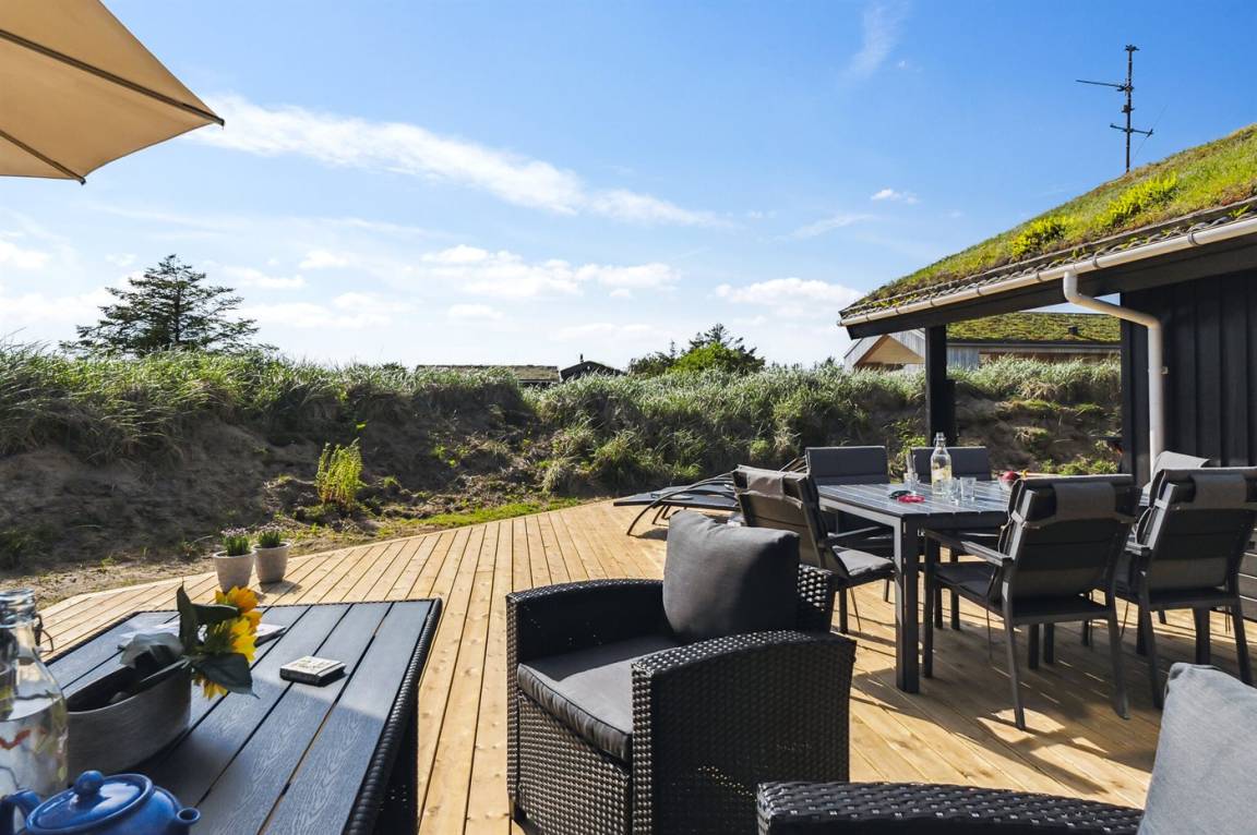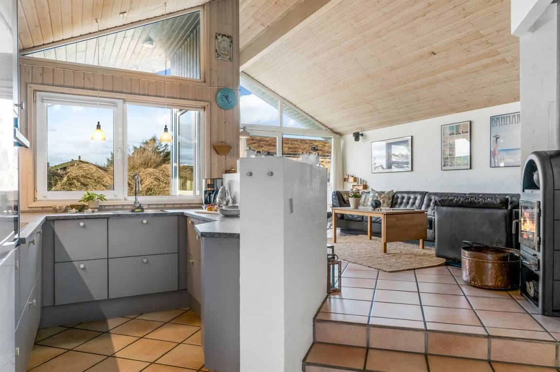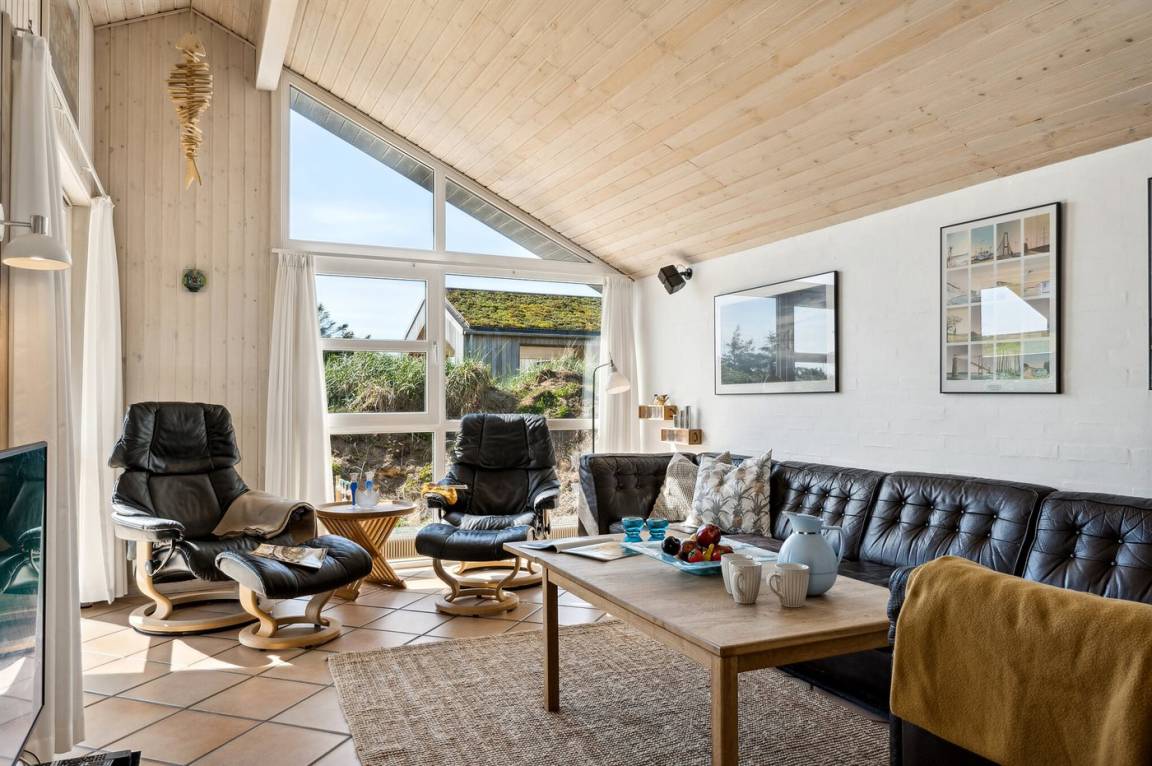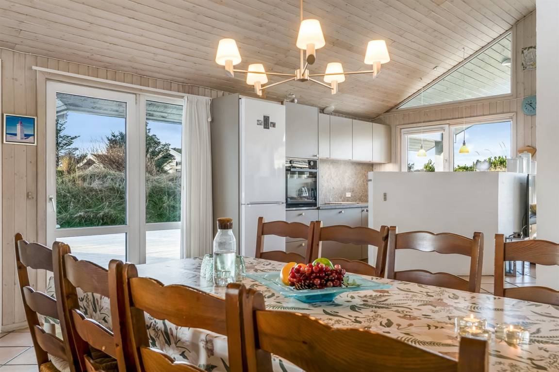 In ruhiger Umgebung finden Sie dieses attraktive und energiegerechte Ferienhaus, das aus giftfreien Materialien gebaut ist. Das Haus liegt nur 800 m von der schönen Nordsee, mit einem der besten und leicht zugänglichen Badestrände Dänemarks, entfernt. Der Mittelpunkt des Hauses ist die Poolabteilung. Schöner Essplatz, von dem Sie die Aktivitäten im Poolraum betrachten können. Im offenen Obergeschoss gibt es Fernseher (kein Antennenanschluss).
