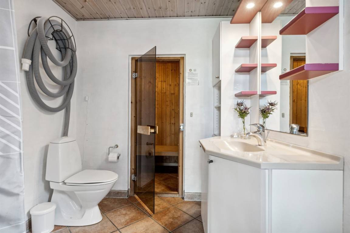 WC und BadEs gibt 2 Badezimmer mit Duschnische und 2 Toiletten. Fußbodenheizung in 1 Badezimmer. Es steht eine Sauna zur Verfügung in der Sie sich so richtig entspannen können.