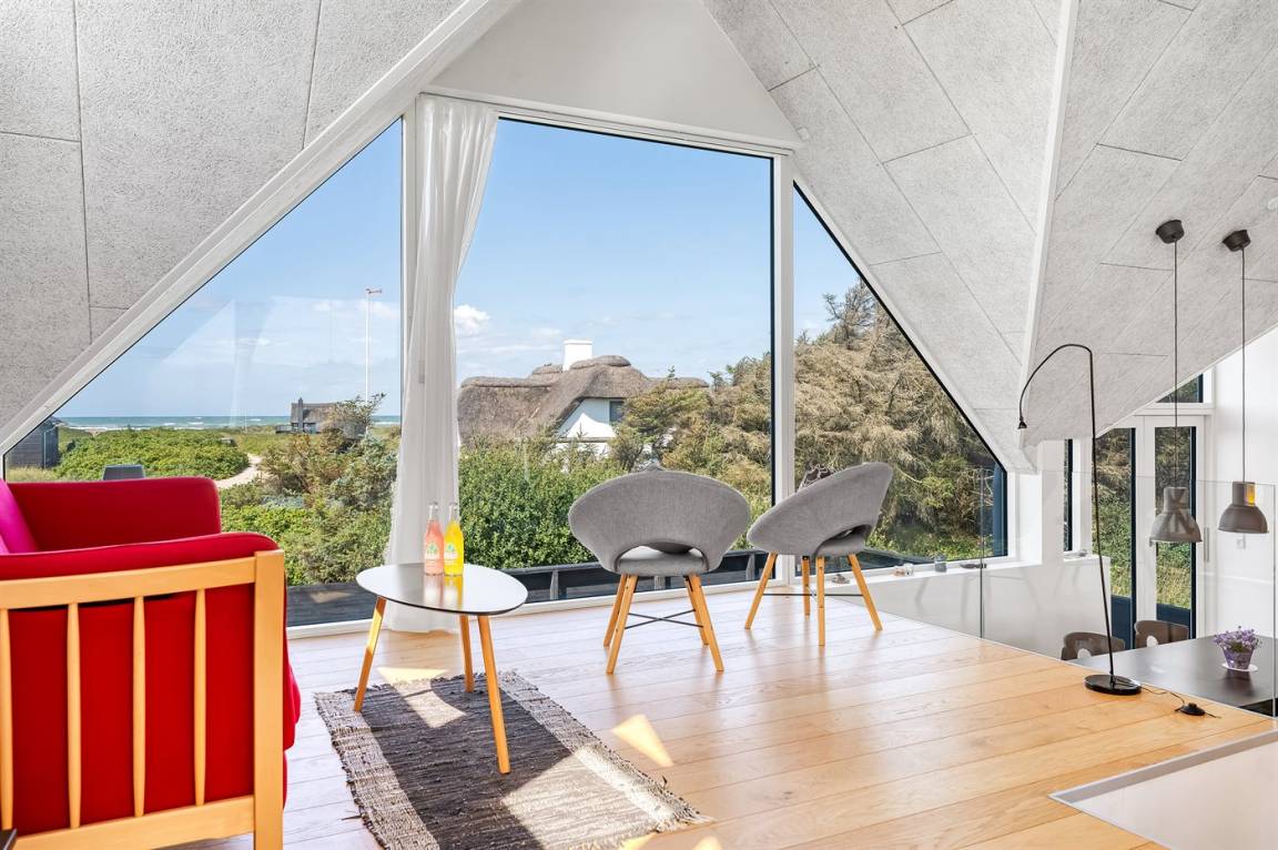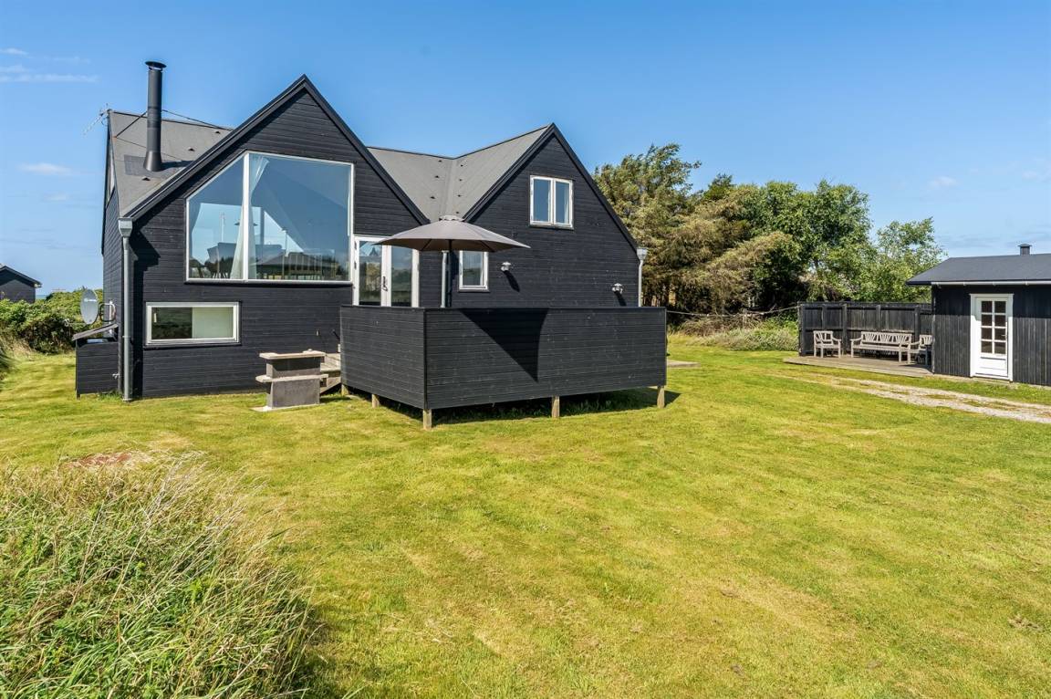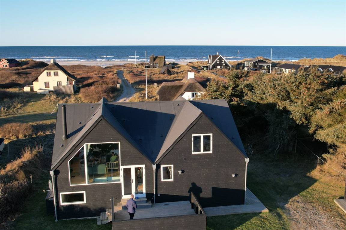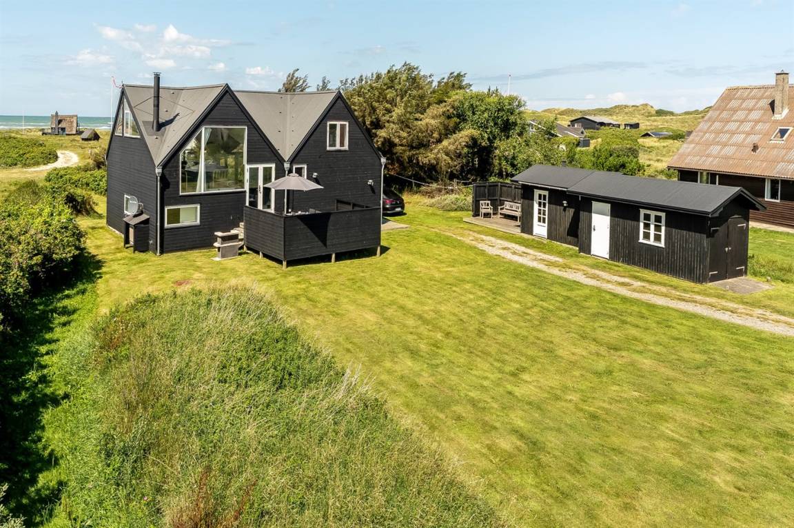 DraußenDie Ferienunterkunft liegt auf einem 1530 m² großen Dünengrundstück. Die Entfernung zum Meer beträgt 180 m. Die nächste Einkaufsmöglichkeit liegt 1500 m entfernt. In einem Abstand von 4000 m gibt es einen Golfplatz. Es steht ein offenes Terrassenareal zur Verfügung. Es steht ein Grill zur Verfügung. Es ist ein Ladestecker für Elektroautos installiert. Parkplatz auf dem Grundstück.