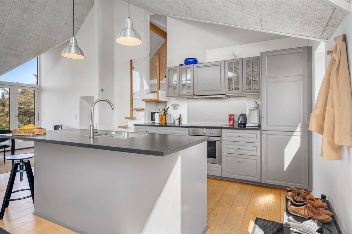 Der Strand ist nur wenige Gehminuten entfernt, sodass du ganz einfach schnell ins Wasser springen oder einen ruhigen Spaziergang am Ufer genießen kannst. Gleichzeitig wohnst du in fußläufiger Entfernung zu Blokhus, wo dich lebhaftes Treiben, Cafés, Geschäfte und Sommerstimmung erwarten.