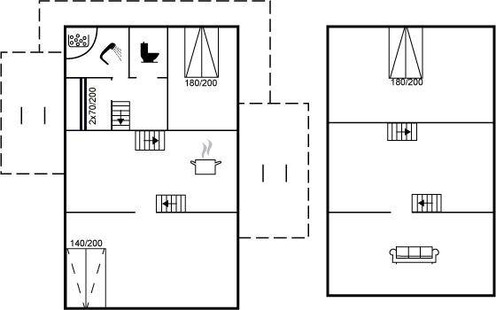 SchlafverhältnisseDie Schlafplätze verteilen sich auf 4 Schlafräume. 4 Schlafplätze in Doppelbetten. 2 Schlafplätze in einem Etagenbett. 2 Schlafplätze auf einer Doppelschlafcouch. 2 von diesen Schlafplätzen befinden sich im Aktivitätsraum.