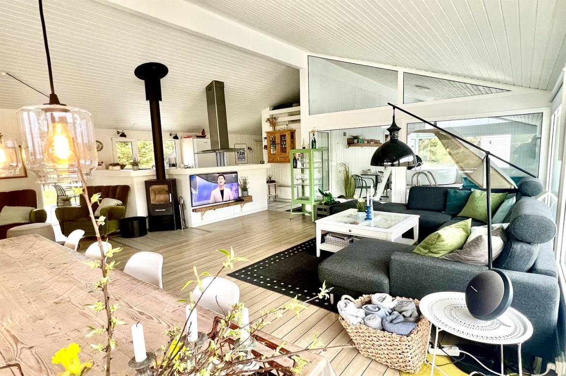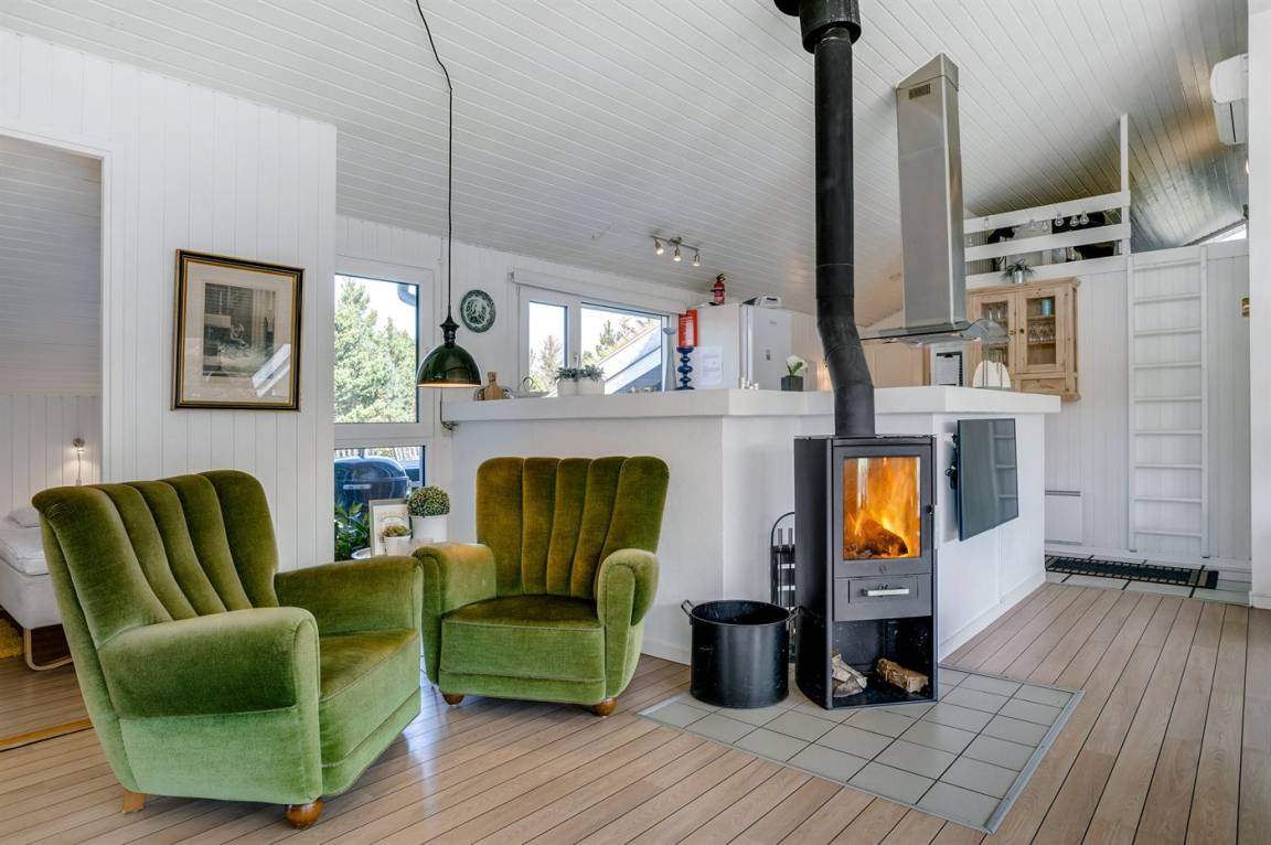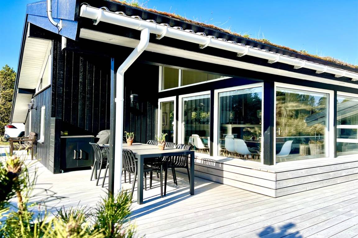 DraußenDie Ferienunterkunft liegt auf einem 2600 m² großen Naturgrundstück. Die Entfernung zum Meer beträgt 1400 m. Die nächste Einkaufsmöglichkeit liegt 2500 m entfernt. Es steht ein 40 m² Terrassenareal zur Verfügung. Außerdem gibt es 10 m² überdachte Terrasse. Schaukel. Eingegrabenes Trampolin. Außendusche verfügbar von Woche 13 bis Woche 43. Es ist ein Ladestecker für Elektroautos installiert.