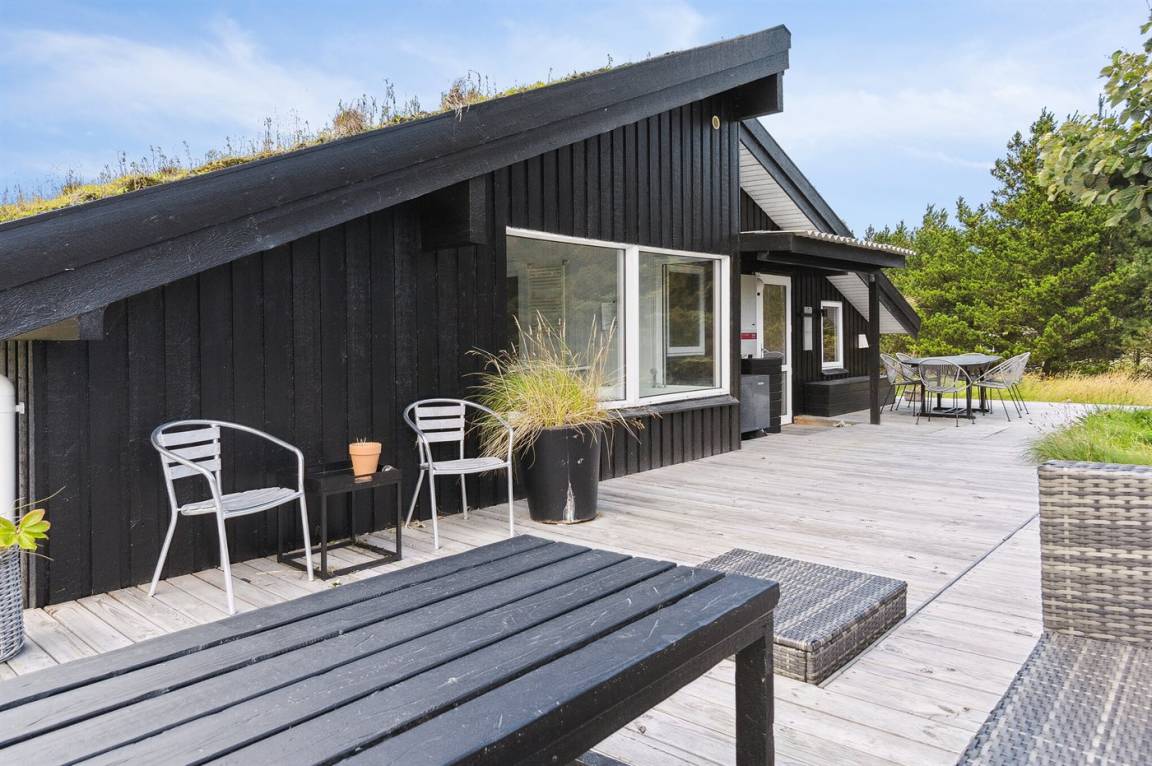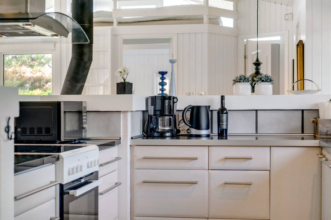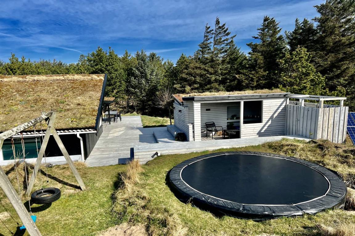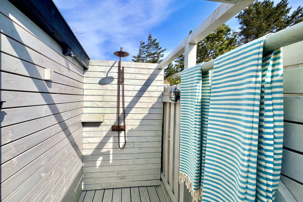 DraußenDie Ferienunterkunft liegt auf einem 2600 m² großen Naturgrundstück. Die Entfernung zum Meer beträgt 1400 m. Die nächste Einkaufsmöglichkeit liegt 2500 m entfernt. Es steht ein 40 m² Terrassenareal zur Verfügung. Außerdem gibt es 10 m² überdachte Terrasse. Schaukel. Eingegrabenes Trampolin. Außendusche verfügbar von Woche 13 bis Woche 43. Es ist ein Ladestecker für Elektroautos installiert.