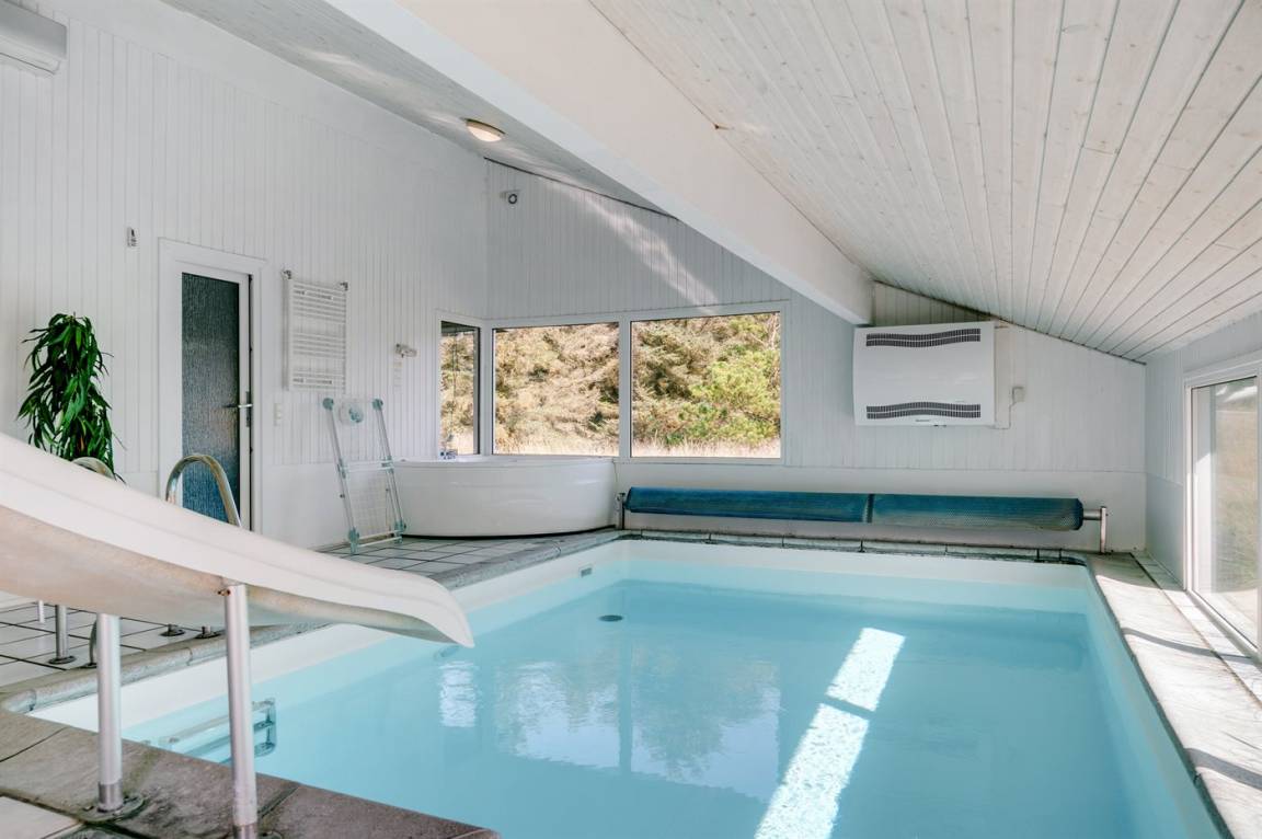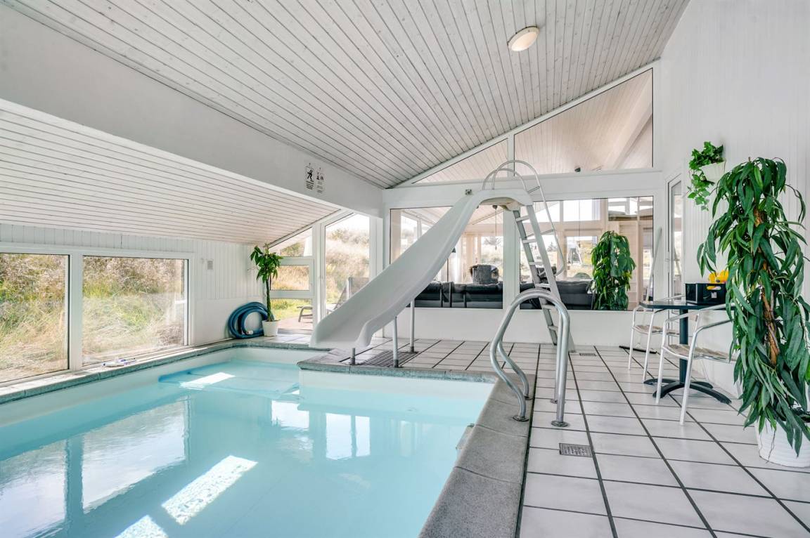 Schönes Ferienhaus mit Swimmingpool, 2 m² Kinderpool und Wasserrutsche, laufend modernisiert, auf einem großen Grundstück in ruhiger Umgebung gelegen. Übrigens: Die 2 Schlafplätze auf Matratzen befinden sich im offenen Obergeschoss.