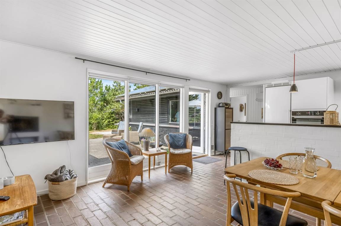 Das Haus wirkt hell und einladend mit einer geschmackvollen Einrichtung, die harmonisch auf die Dekoration abgestimmt ist. Vom Wohnzimmer aus hast du direkten Zugang zum Terrassenbereich.
