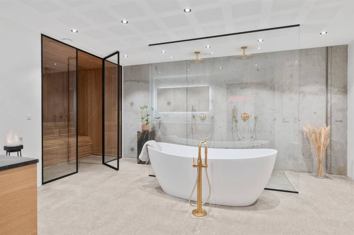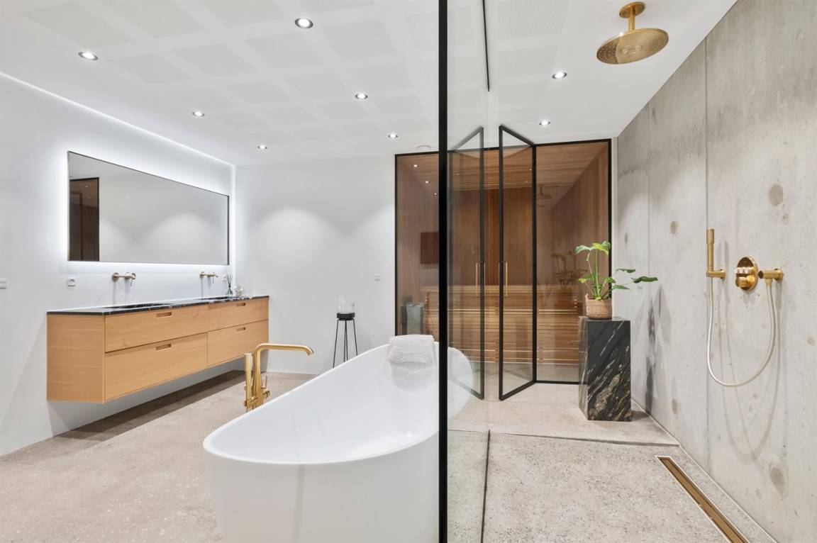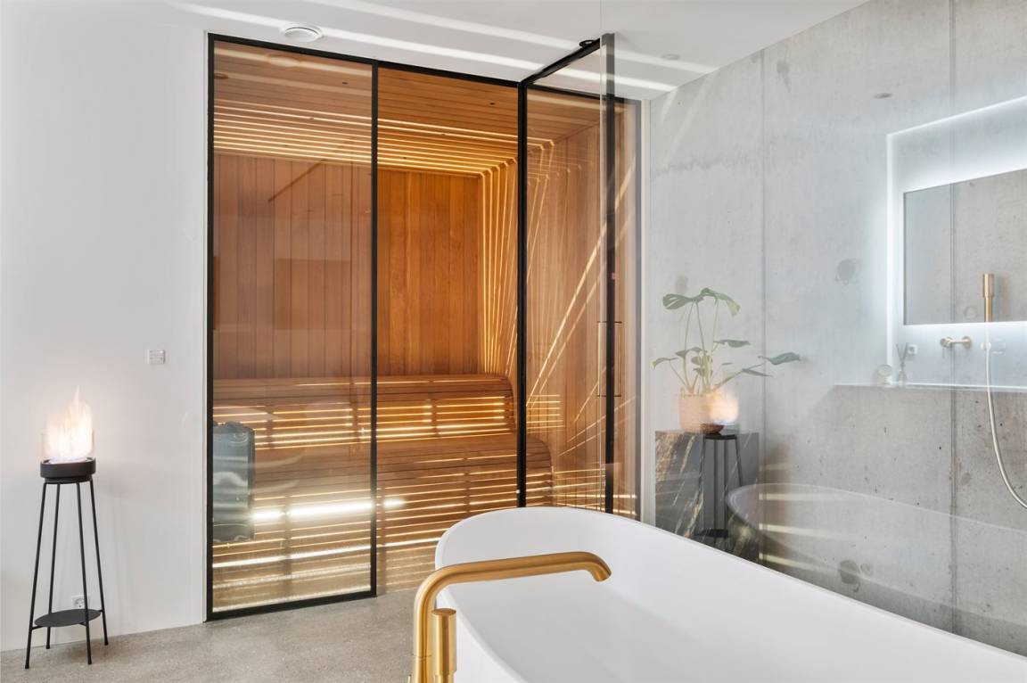 WC und BadEs gibt 1 Badezimmer mit Fußbodenheizung und Badewanne sowie 2 Badezimmer mit Fußbodenheizung und Duschnische. Es steht eine Sauna zur Verfügung in der Sie sich so richtig entspannen können.