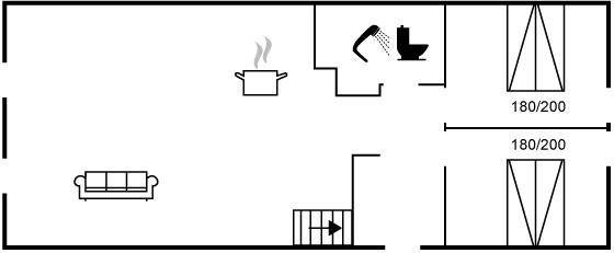 SchlafverhältnisseDie Schlafplätze verteilen sich auf 2 Schlafräume. 6 Schlafplätze in Doppelbetten. 2 von diesen Schlafplätzen befinden sich im offenen Obergeschoss.