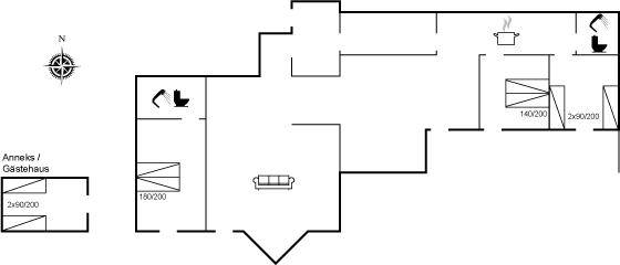 SchlafverhältnisseDie Schlafplätze verteilen sich auf 4 Schlafräume. 4 Schlafplätze in Doppelbetten. 4 Schlafplätze in Einzelbetten. 2 von diesen Schlafplätzen befinden sich im Gästehaus. Ferner steht ein Kinderbett zur Verfügung.