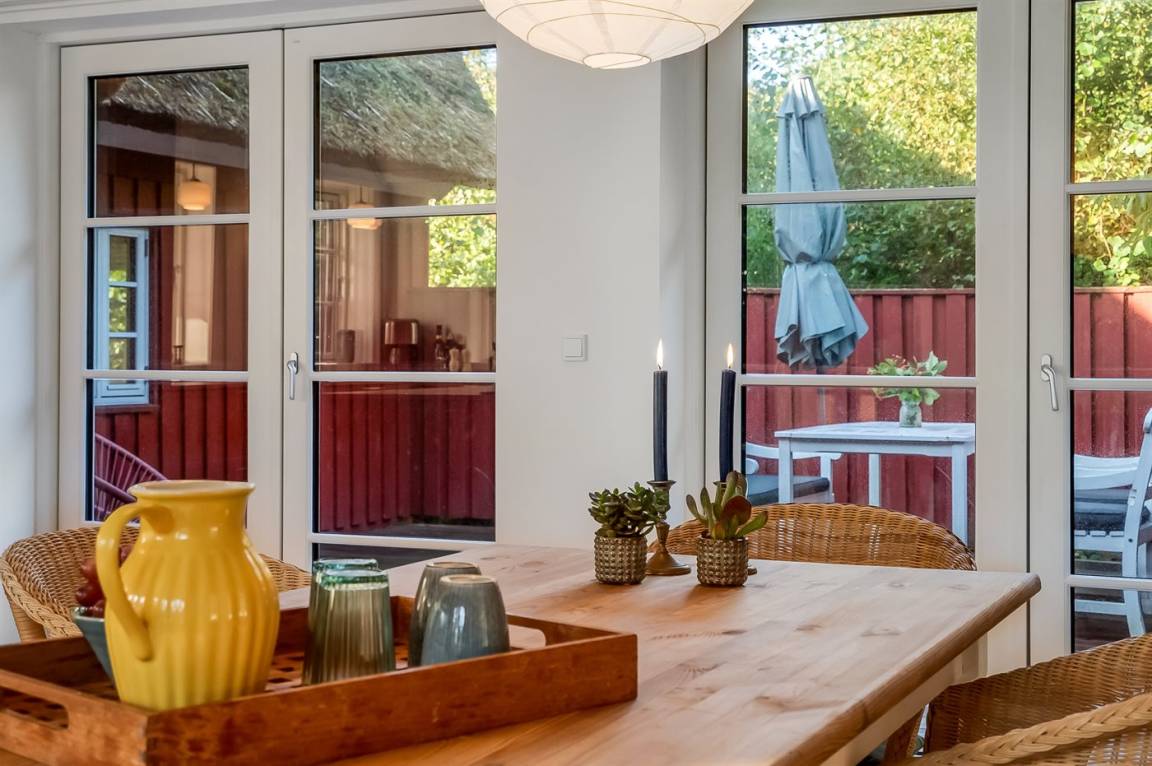 „The holiday home itself: Wir waren jetzt das 6.Jahr in diesem Ferienhaus und sehen den zunehmenden Verfall. Es ist sehr schade. Die alten Fenster sind in einem sehr schlechten Zustand und dürfen nicht mehr geöffnet werden. Da es in diesem Sommer sehr warm war und wir immer bei offenen Fenstern schlafen, war es wenig erholsam. Sicher hätten wir auch im Nebengebäude schlafen können, aber dann nur getrennt und eine Person im Hochbett. Dies ist aus gesundheitlichen Gründen nicht mehr möglich. Außerdem nachts im Dunkeln über die Terrasse ins Haupthaus zur Toilette?! geht gar nicht. Die Eingangstüren im Haupthaus schließen oft nicht mehr richtig und es zieht. Die Dichtung im Backofen war defekt. Es fallen ständig Teile vom Reetdach des Nebengebäudes. Dies müsste dringend in Stand gesetzt werden. Wir werden dieses Haus leider nicht mehr buchen. Trotz allem hatten wir einen tollen Urlaub. Wir wünschen uns sehr, dass die Eigentümer das schöne alte Haus/die Anlage erhalten und etwas investieren.“