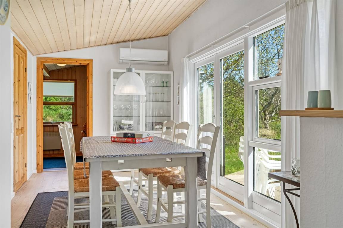 Das Ferienhaus liegt auf einem schönen, ungestörten Grundstück nur wenige Schritte von der ruhigen Waldumgebung und in kurzer Entfernung zu Fårup Sommerland, einem Golfplatz und Outdoor-Padelplätzen. Hier habt ihr die besten Voraussetzungen für Spaziergänge, Radtouren oder einfach, um die Stille zwischen den Bäumen zu genießen. Gleichzeitig ist es nur ein kurzer Spaziergang ins Zentrum von Blokhus, wo euch ein lebendiges Stadtleben, gute Restaurants, gemütliche Cafés und kleine Geschäfte erwarten – alles, was das Herz für einen Urlaub in Nordjütland begehrt.