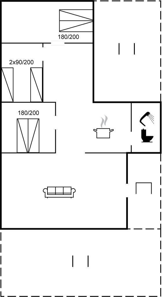 SchlafverhältnisseDie Schlafplätze verteilen sich auf 3 Schlafräume. 4 Schlafplätze in Doppelbetten. 2 Schlafplätze in Einzelbetten.
