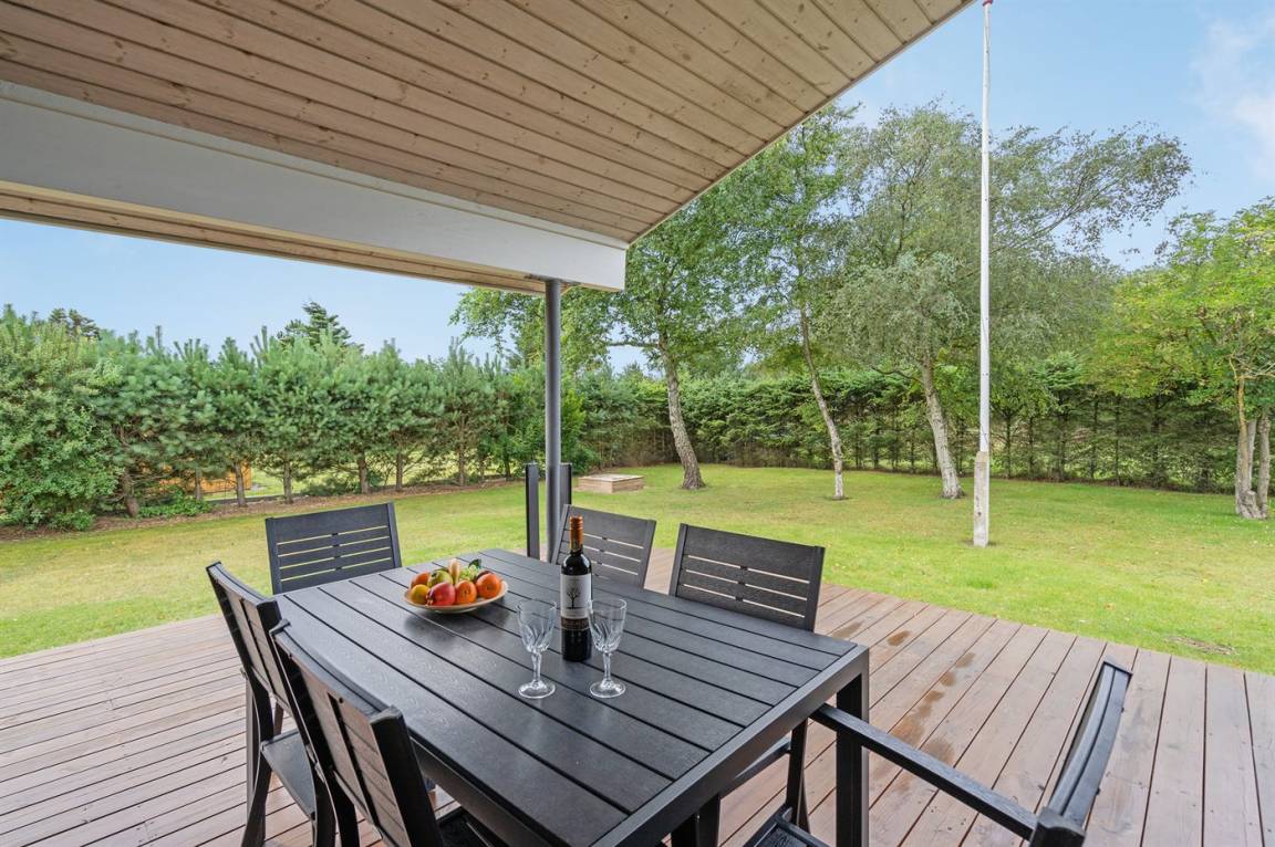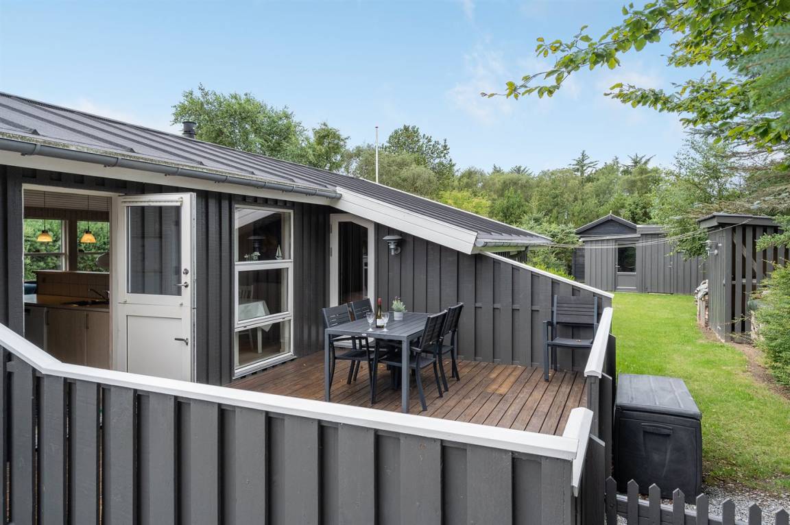 DraußenDie Ferienunterkunft liegt auf einem 828 m² großen Naturgrundstück. Das Grundstück ist eingezäunt. Die Entfernung zum Meer beträgt 800 m. Die nächste Einkaufsmöglichkeit liegt 500 m entfernt. Es steht ein 45 m² Terrassenareal zur Verfügung. Außerdem gibt es 12 m² überdachte Terrasse. Sandkasten. Parkplatz auf dem Grundstück.