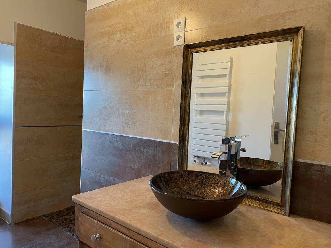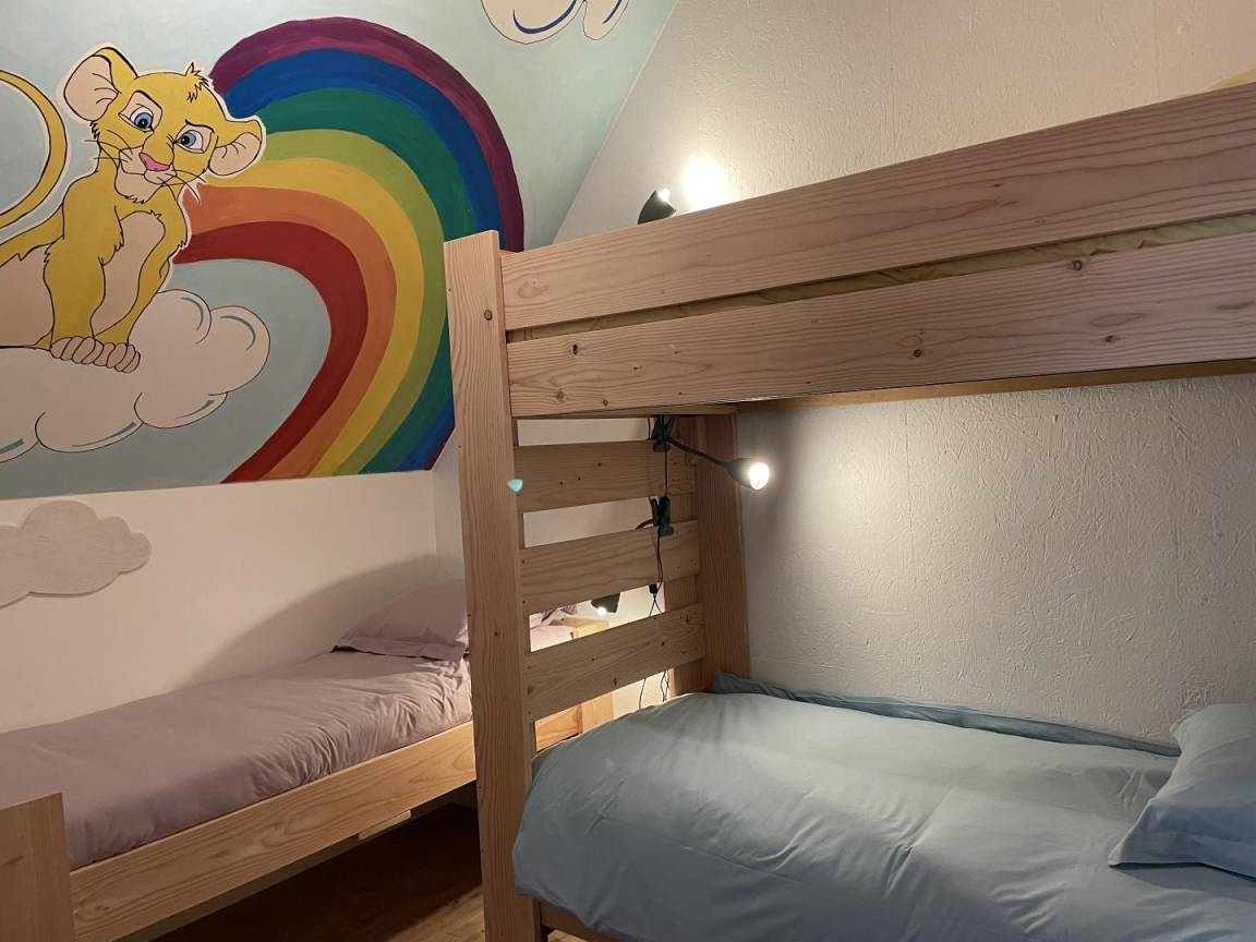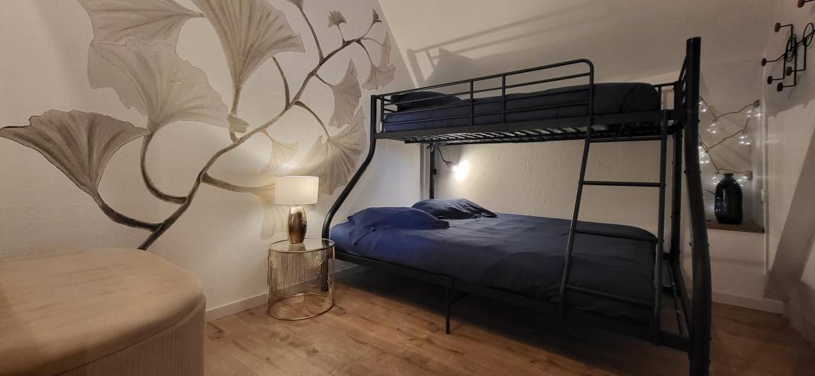 Schiebetür getrennt, 1 Schlafzimmer ohne Fenster für 3 Personen, geeignet für Kinder (2 Betten von 90 x 190 cm Etagenbetten und 1 Bett 80 x 190 cm). Es hat auch eine Tür mit direktem Zugang zum Flur. 1 Schlafzimmer für 2 Personen (140 x 190 cm), 1 separates WC und 1 Badezimmer (Dusche) zugänglich durch ein Ankleidezimmer, Das gemütliche Wohnzimmer im Zwischengeschoss lädt zum Entspannen ein. Schlafmöglichkeit für 2 weitere Personen zum Preis von 15€/Nacht und pro Person.