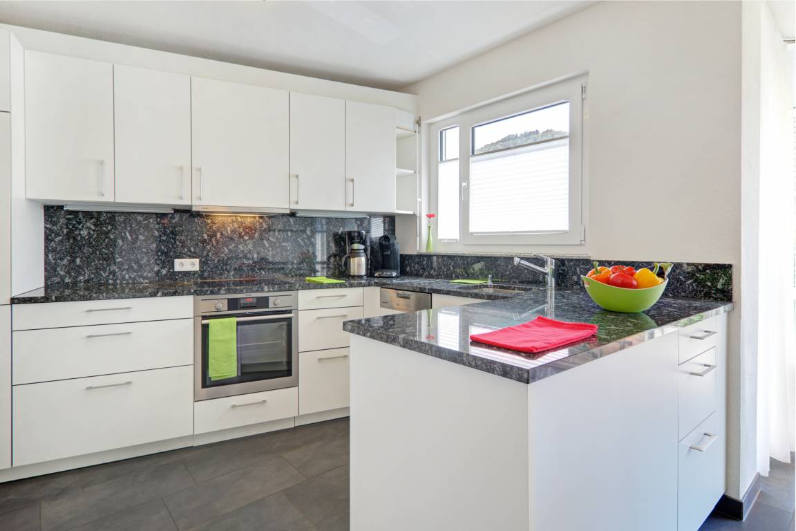Für Ihre Urlaubsküche finden Sie alles was Sie brauchen: Moderne Einbauküche mit Induktionsherd, superleise Spülmaschine, Backofen, Eierkocher, Kühlgefrierschrank, Edelstahlspüle, Granitarbeitsplatte, Geschirr, Rührgerät, Toaster, Senseo-Kaffeeautomat, Kaffeemaschine (gemahlener Kaffee) ,Wasserkocher u.v.m.