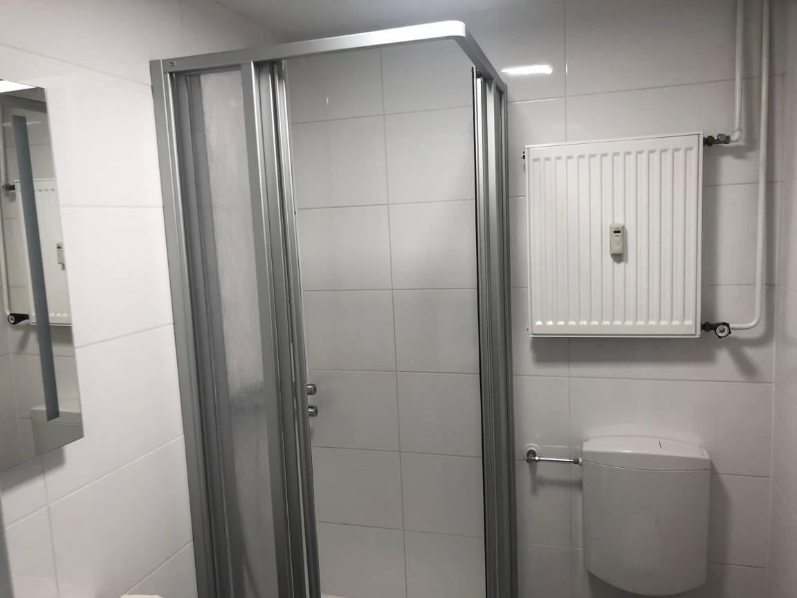 Im Bad, ausgestattet mit WC, Waschbecken und Dusche, stehen unseren Gästen auch ein Haartrockner, Handwaschseife und Kosmetiktücher zur Verfügung.