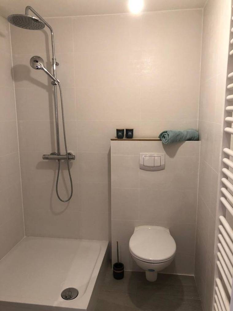 Im Bad, ausgestattet mit WC, Waschbecken und Dusche, stehen unseren Gästen auch ein Haartrockner, Handwaschseife und Kosmetiktücher zur Verfügung.