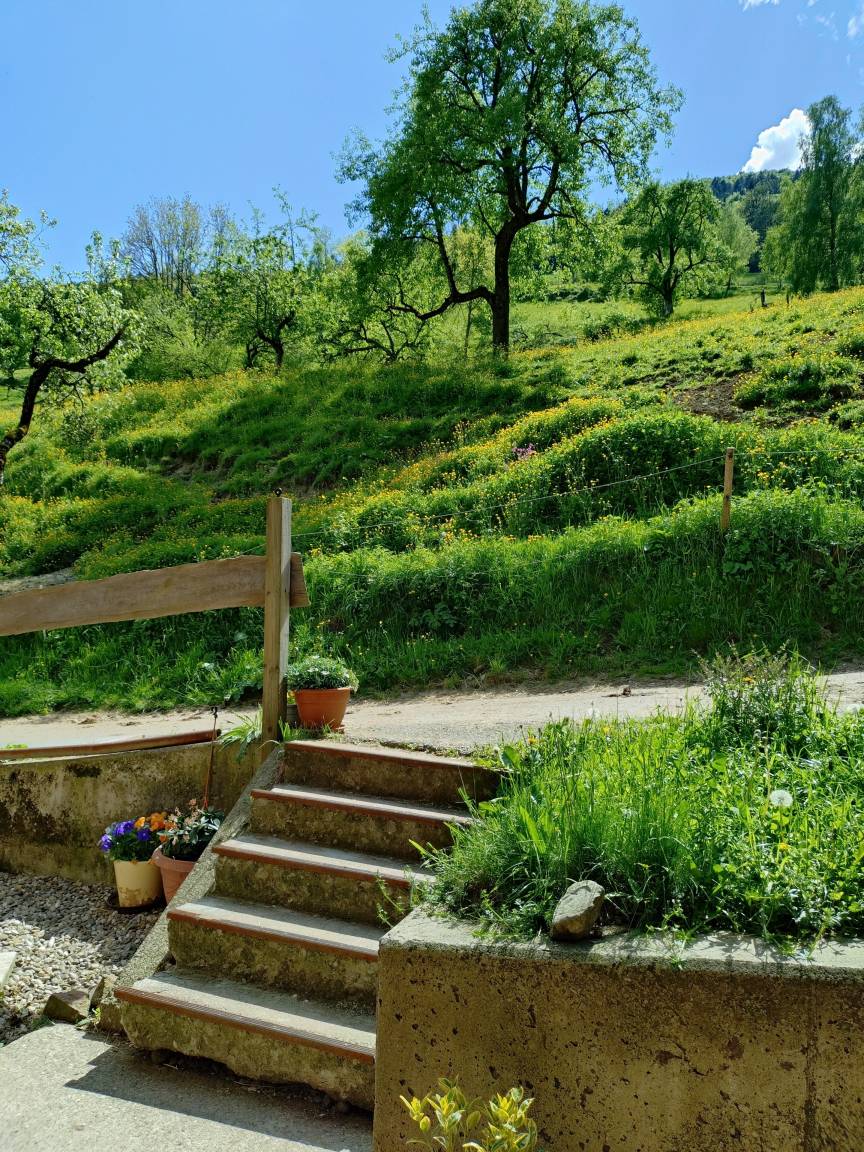 Der Eingang der Wohnung befindet sich direkt neben dem Jungviehstall. Morgens können somit gleich junge Kühe und Kälber begrüßt werden.