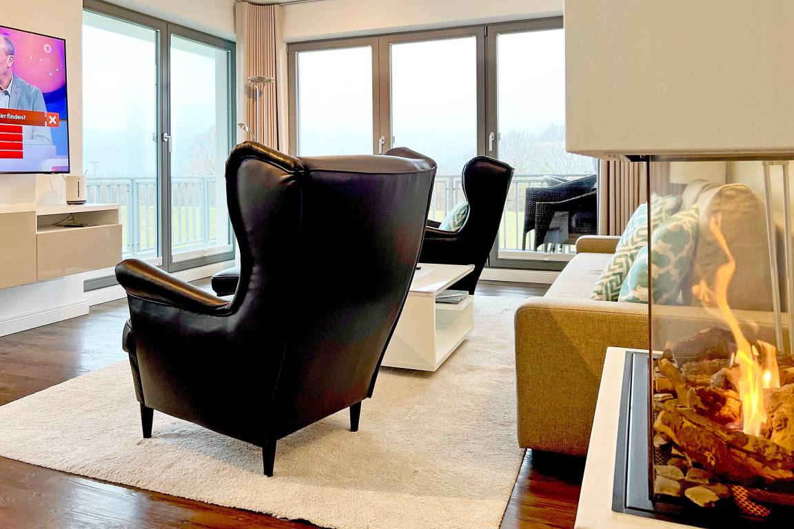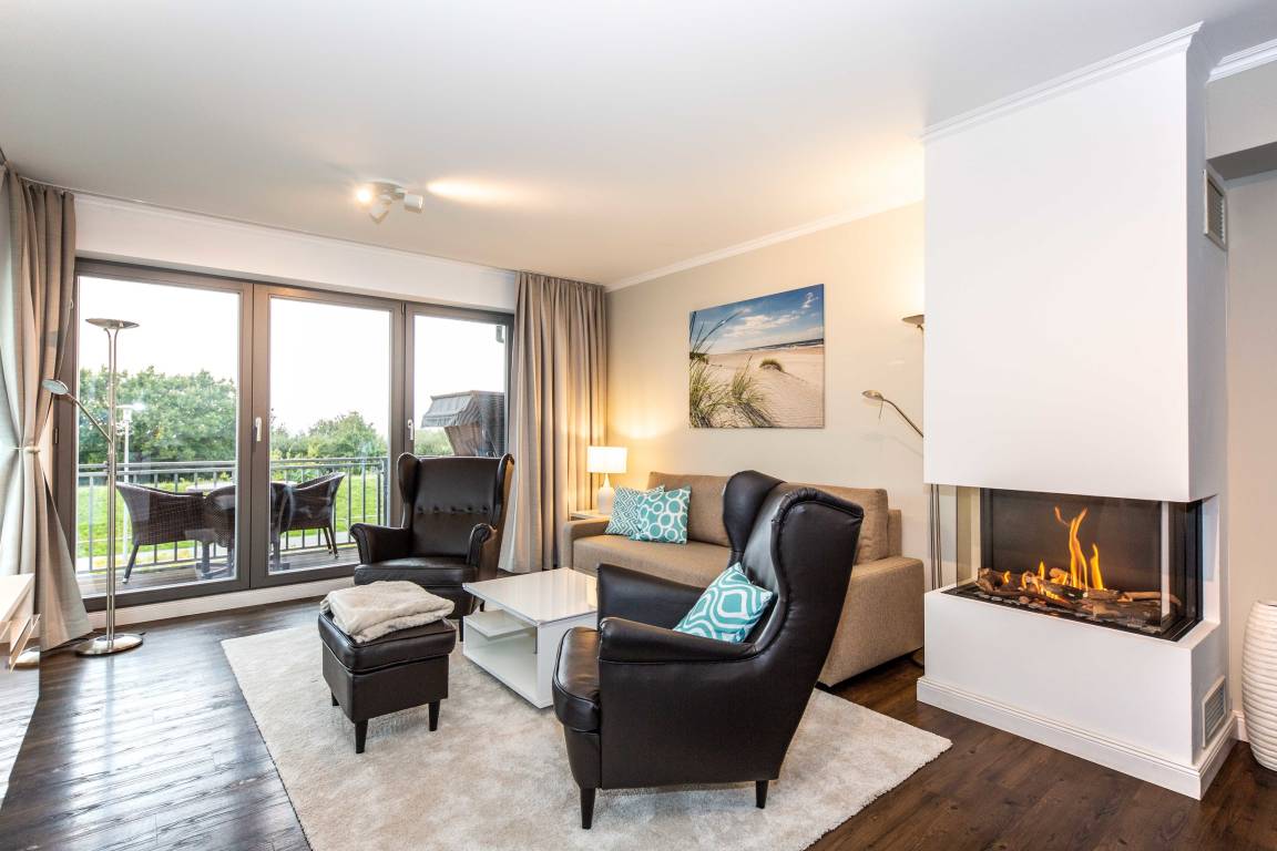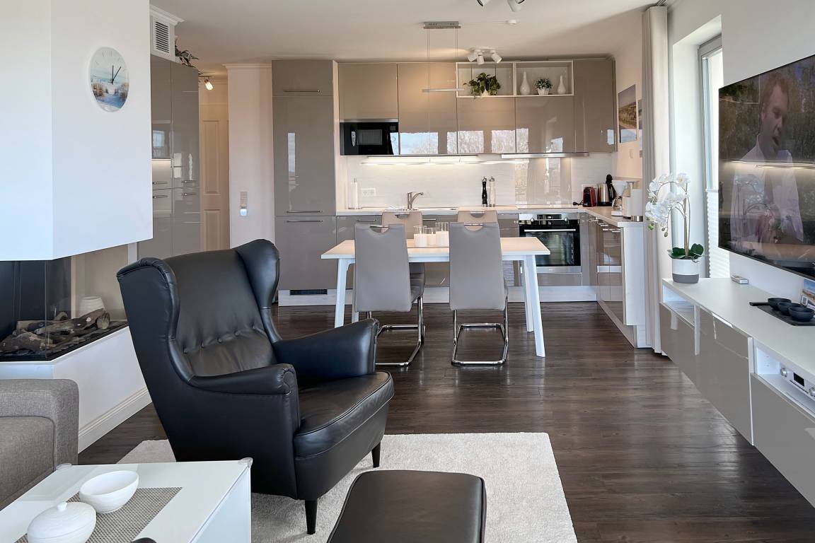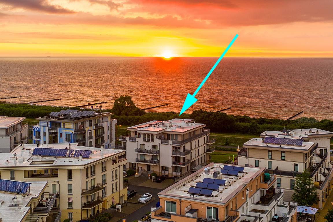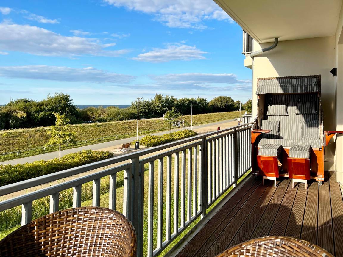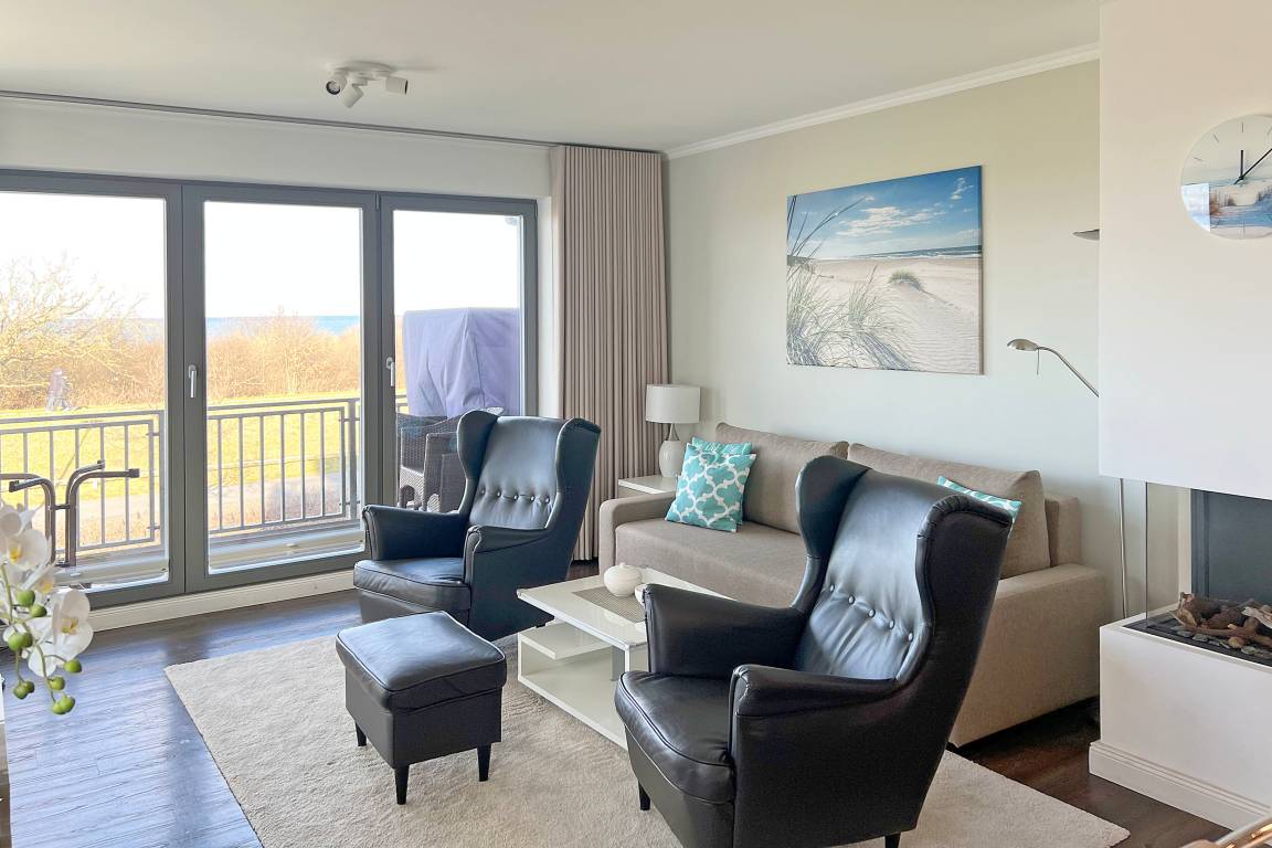 Direkter traumhafter MEERBLICK. Liebevoll eingerichtetes Zweiraumapartment mit Balkon in der ersten Reihe. DIREKT am MEER und nur wenige Meter zum Strand. Ein Highlight ist die lichtdurchflutete Fensterfront mit Blick auf die Ostsee und teils atemberaubenden Sonnenuntergängen. Der Eckbalkon mit Strandkorb, ein geschlossener Kamin, zwei grosse TV's, ein modernes Bad mit bodengleicher Dusche, ein kostenloser TG-PKW-Stellplatz und Fahrstuhl sind weitere Highlights..