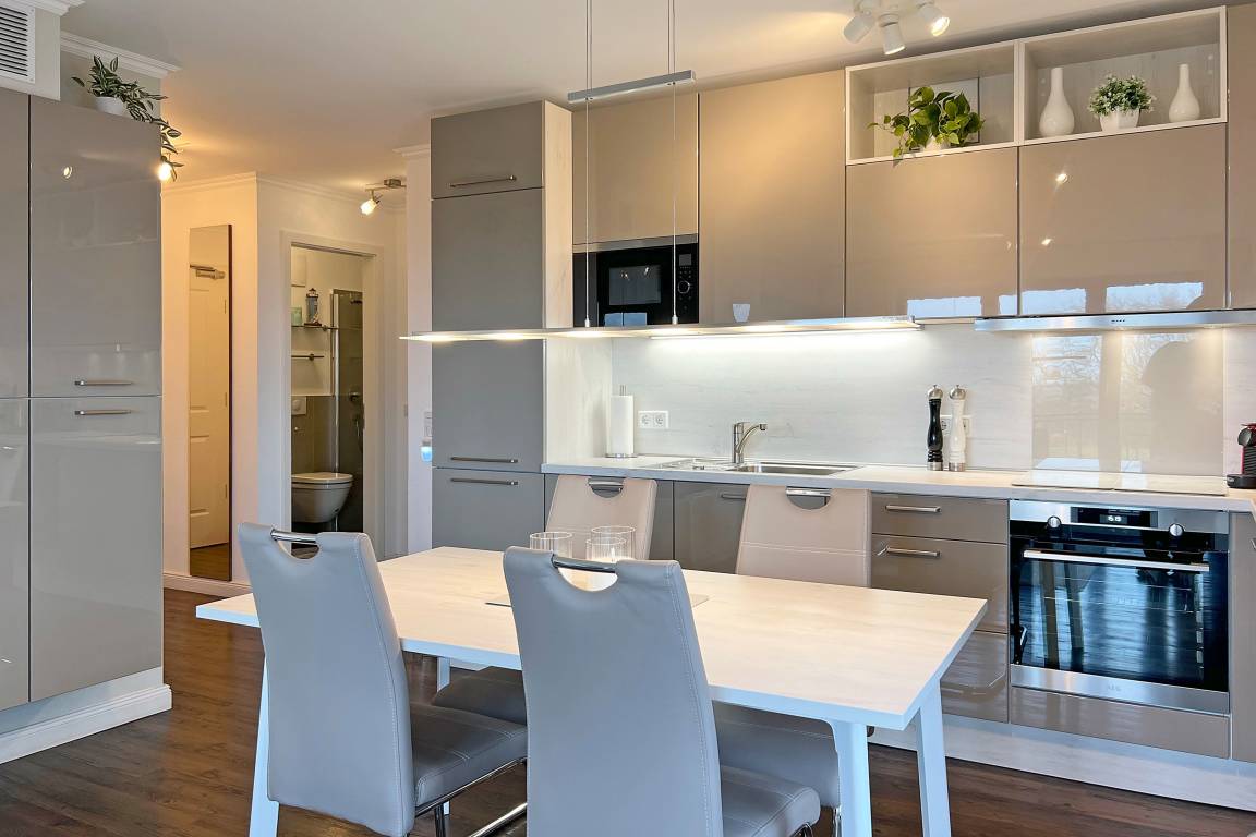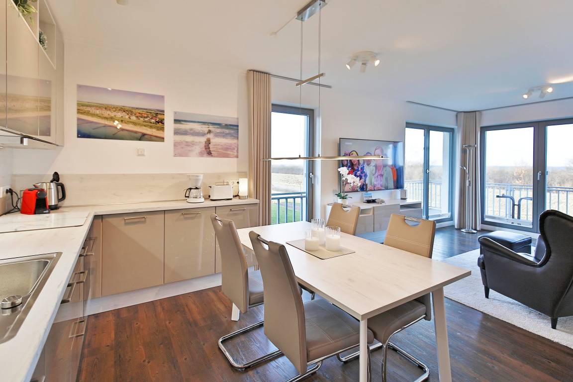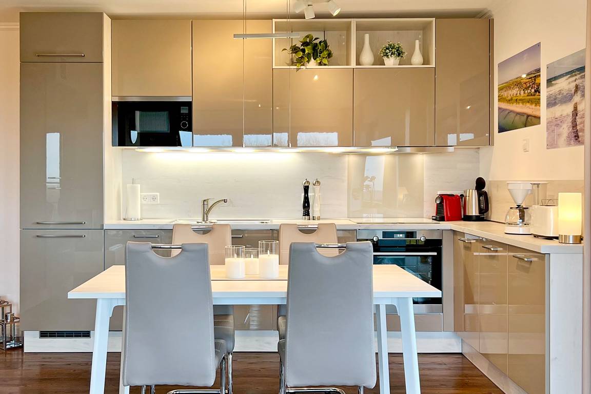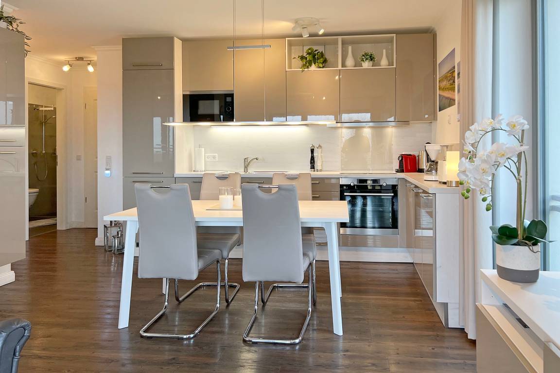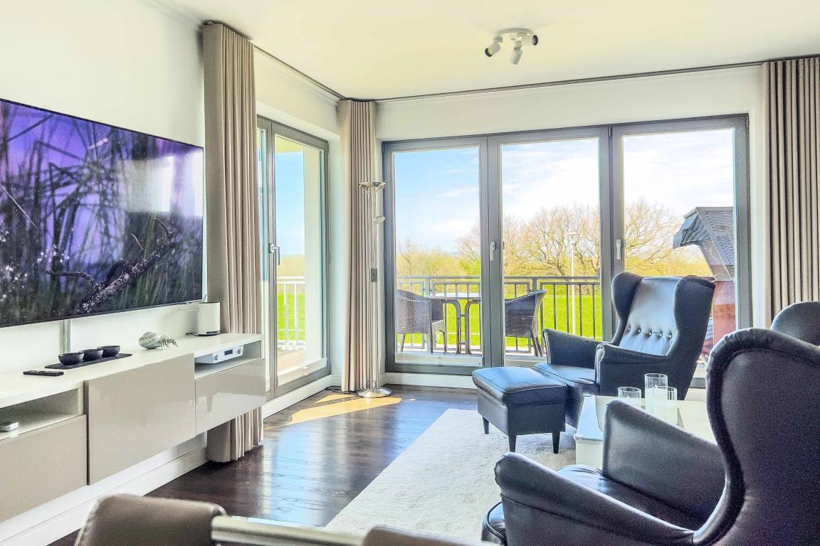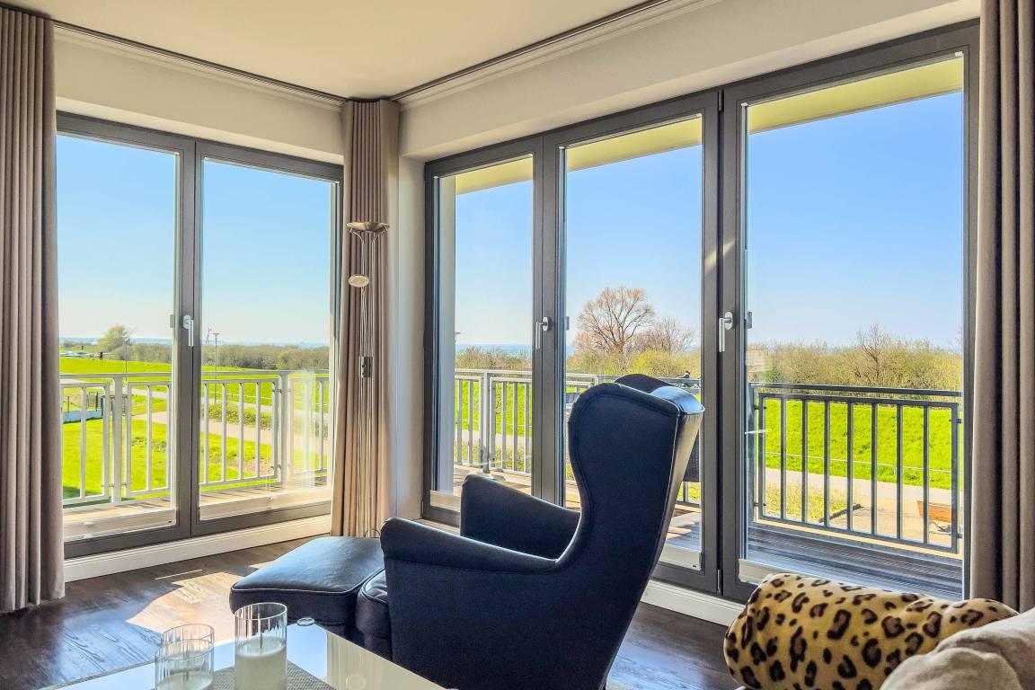 Direkter traumhafter MEERBLICK. Liebevoll eingerichtetes Zweiraumapartment mit Balkon in der ersten Reihe. DIREKT am MEER und nur wenige Meter zum Strand. Ein Highlight ist die lichtdurchflutete Fensterfront mit Blick auf die Ostsee und teils atemberaubenden Sonnenuntergängen. Der Eckbalkon mit Strandkorb, ein geschlossener Kamin, zwei grosse TV's, ein modernes Bad mit bodengleicher Dusche, ein kostenloser TG-PKW-Stellplatz und Fahrstuhl sind weitere Highlights..