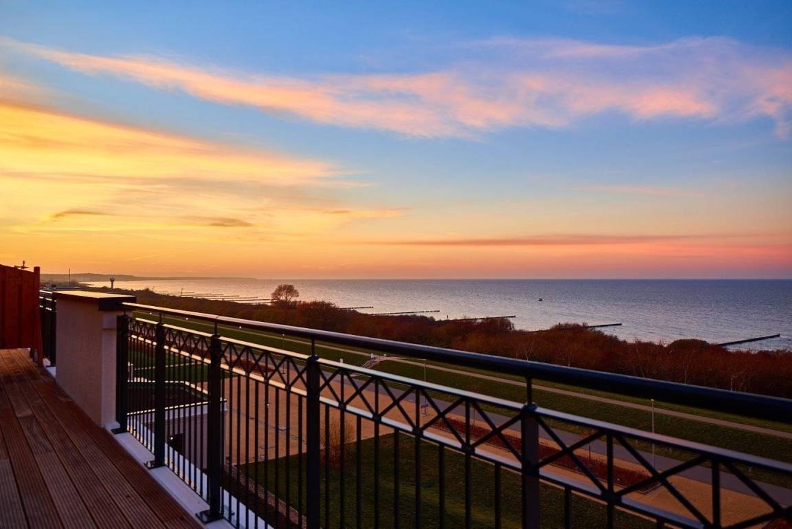 Die 76 m² große 2,5-Zimmer Penthouse-Suite ist für max. 45Personen geeignet und befindet sich in nördlicher Lage mit Blick auf die Ostsee.