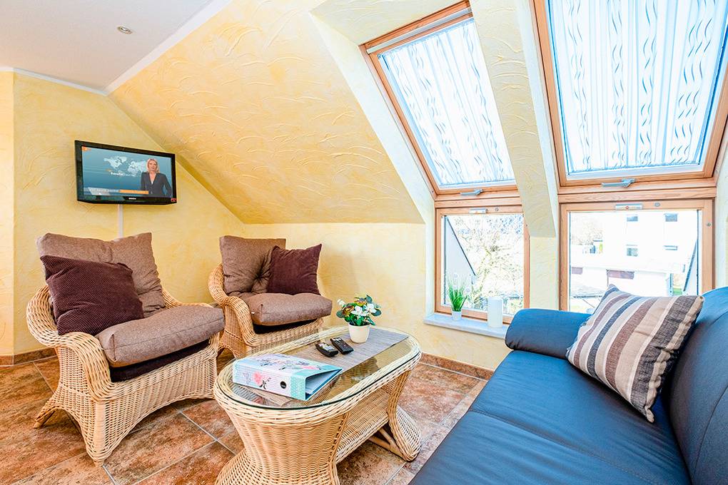 Nebenkosten Endreinigung 188 € (wird bei Buchung erhoben). Kurtaxe. Bettwäsche, Handtücher leihbar 24 €/Pers (Bestellung, wird bei Buchung erhoben). Zusätzliche Leistungen 1 Pkw-Stellplatz im Preis inklusive. Kaution 250 € (wird bei Buchung erhoben). Haustier nicht erlaubt.Räume & Aufteilung