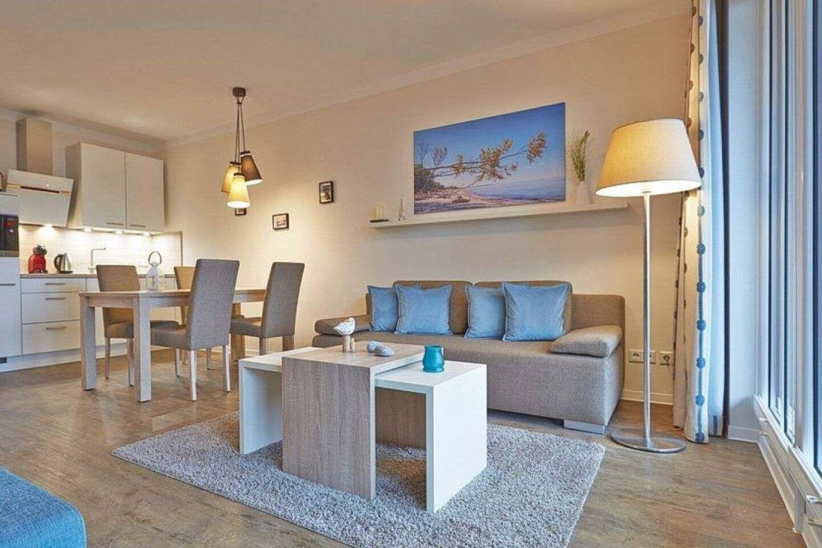 Die 49 m² große 2-Zimmer Suite ist für max. 4 Personen geeignet und befindet sich in südwestlicher Lage mit seitlichem Blick auf die Strandpromenade.