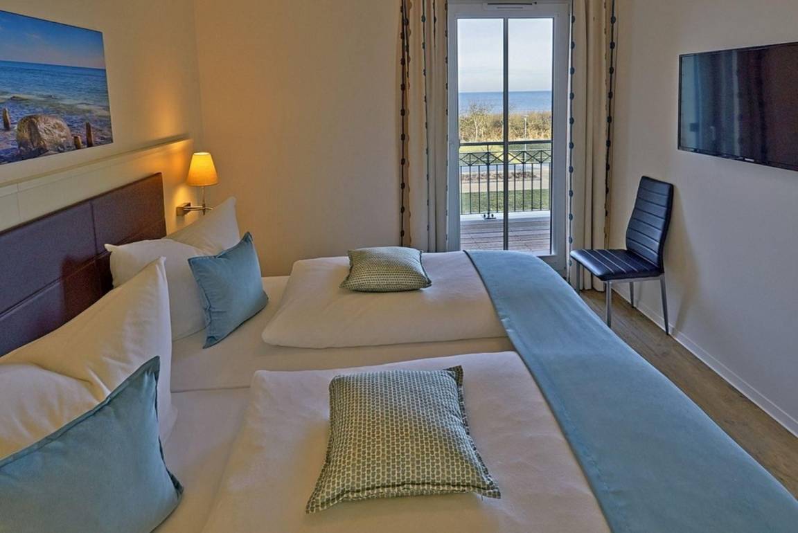Die 49 m² große 2-Zimmer Suite ist für max. 4 Personen geeignet und befindet sich in nördlicher Lage mit Blick auf die Ostsee.
