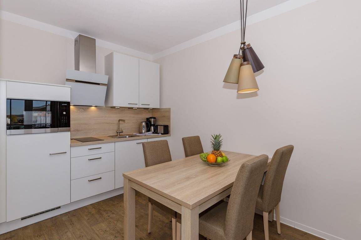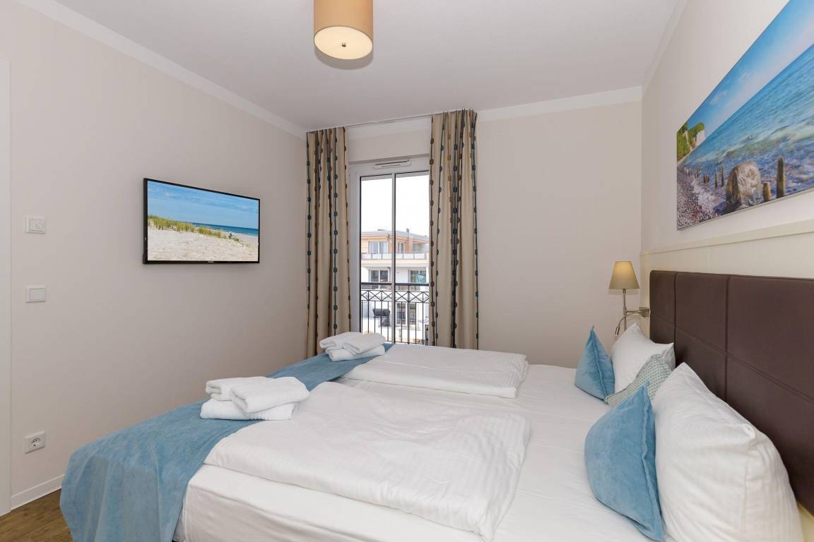 Die 49 m² große 2-Zimmer Suite ist für max. 4 Personen geeignet und befindet sich in südwestlicher Lage mit seitlichem Blick auf die Ostsee.