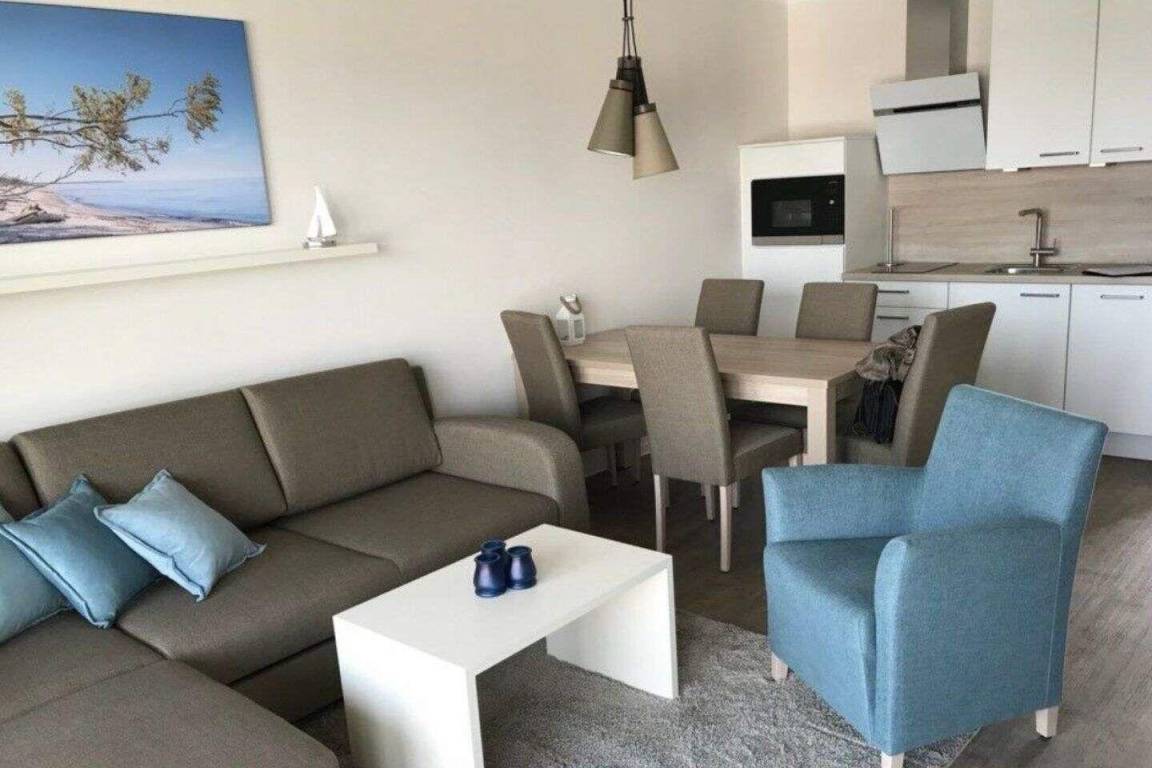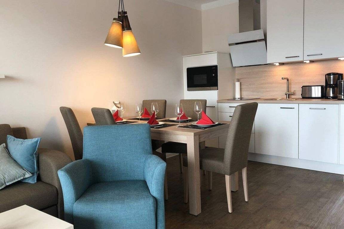 Die 61 m² große 2,5-Zimmer Suite ist für max. 5 Personen geeignet und befindet sich in südwestlicher Lage mit seitlichem Blick auf die Ostsee.