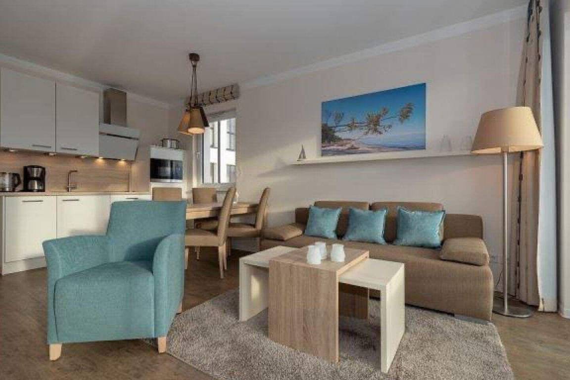Die 61 m² große 2-Zimmer Suite ist für max. 4 Personen geeignet und befindet sich in östlicher Lage mit Blick auf Börgerende.