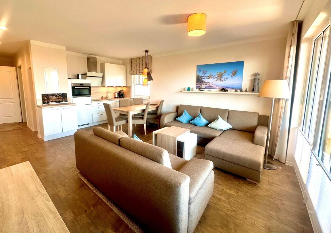 Die 76 m² große 3-Zimmer Suite ist für max. 5 Personen geeignet und befindet sich in nördlicher Lage mit Blick auf die Ostsee.