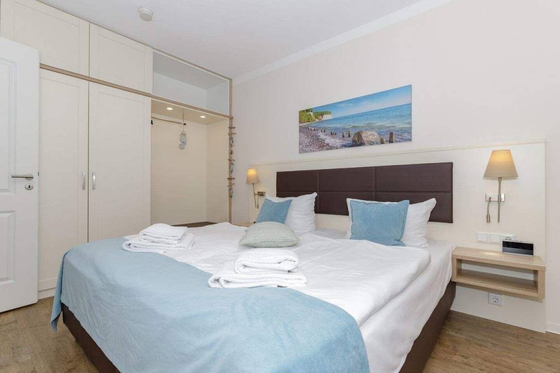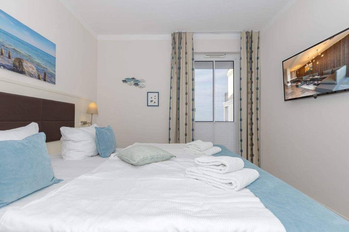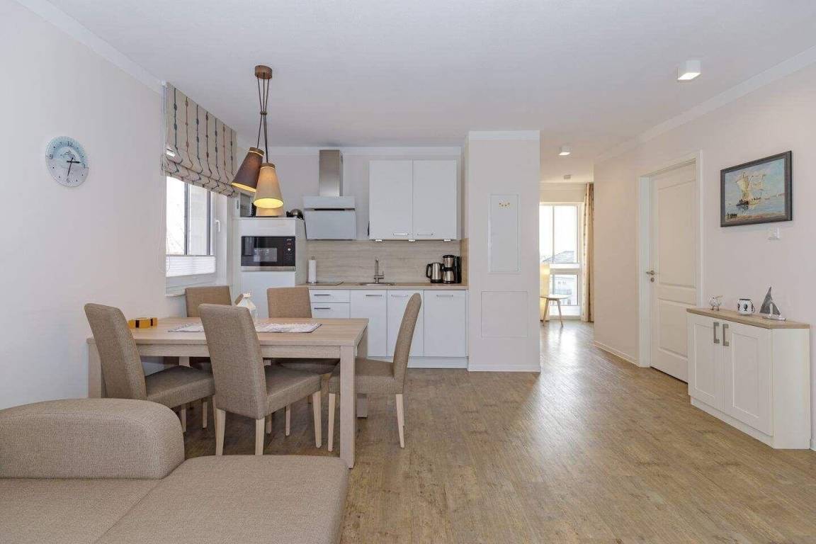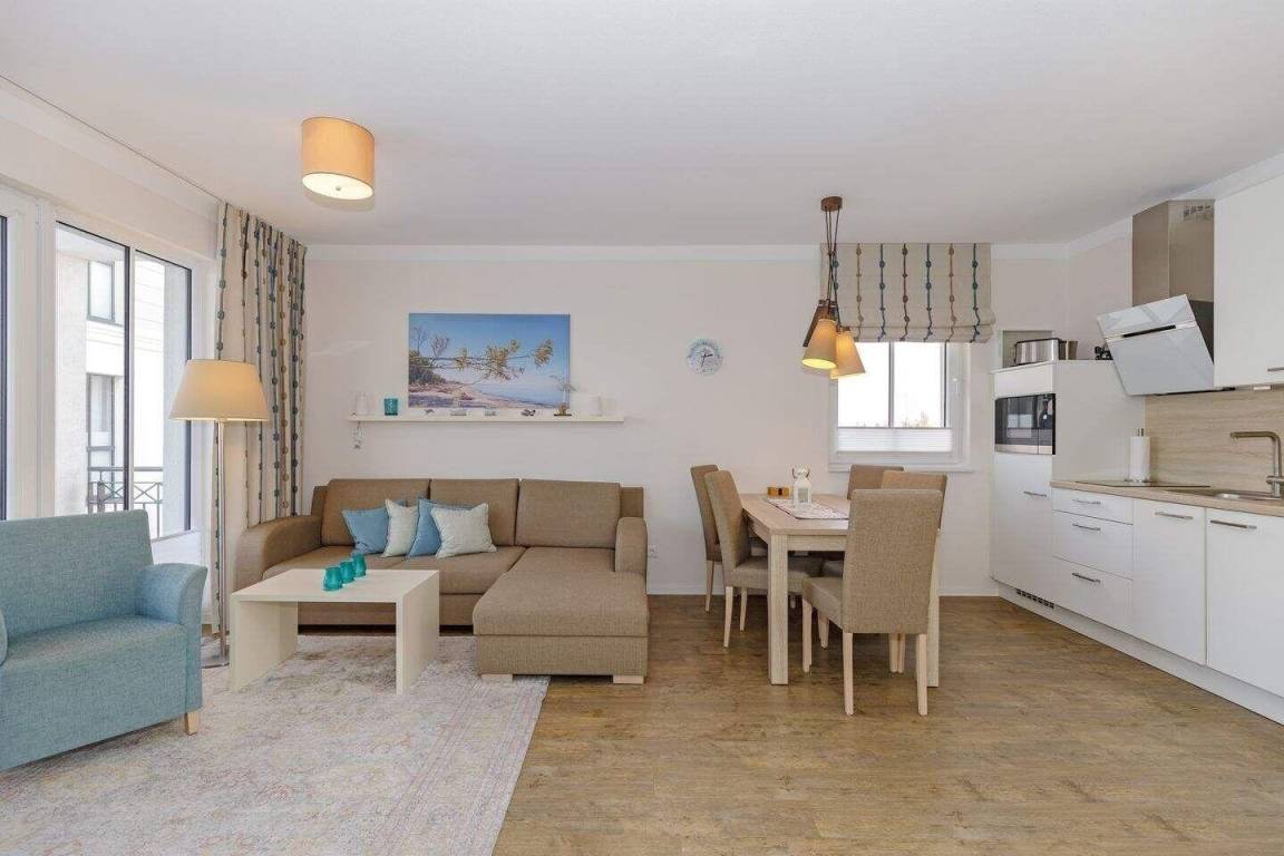 Die 66 m² große 2,5-Zimmer Suite ist für max. 5 Personen geeignet und befindet sich in nördlicher Lage mit Blick auf die Ostsee.