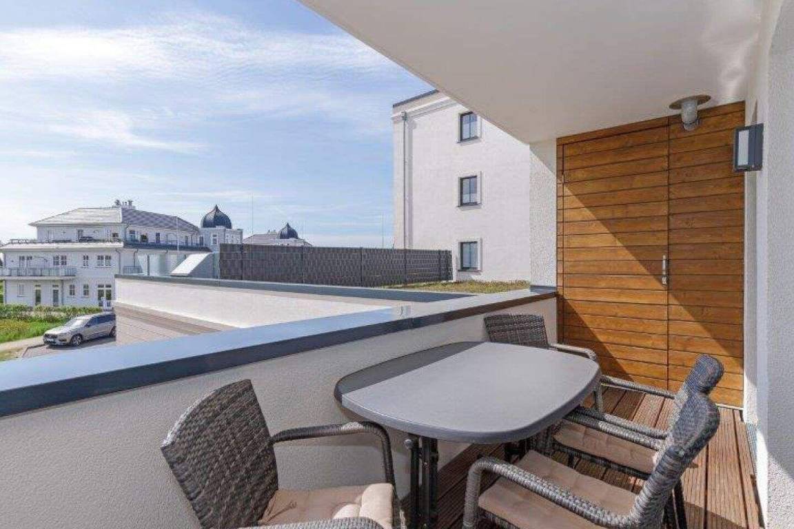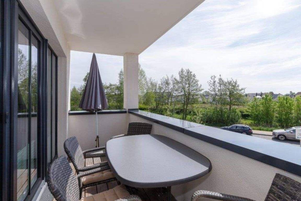 Auf dem überdachten Balkon stehen Ihnen Terrassenmöbel zur Verfügung. Hier können Sie beim Rauschen des Meeres entspannen.