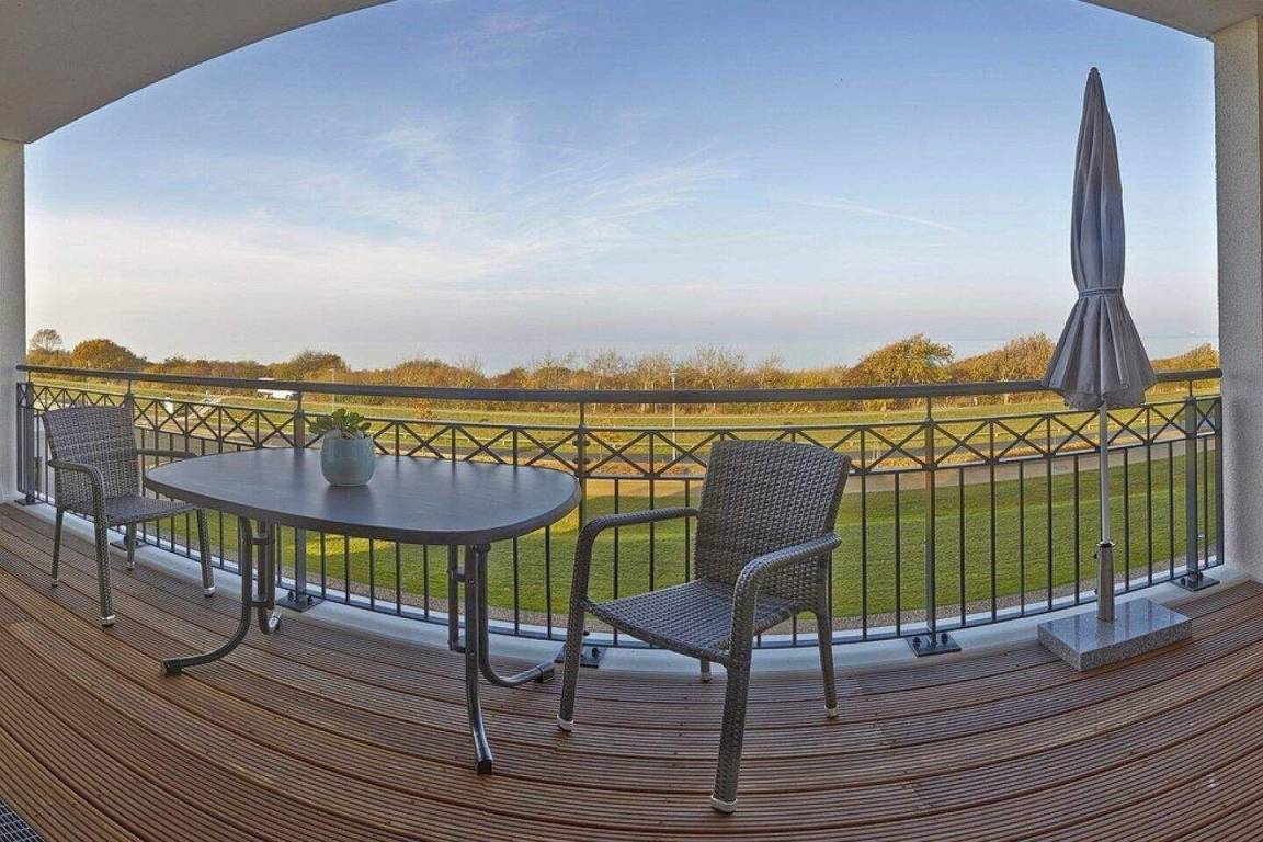 Auf dem überdachten Balkon, der zur Meerseite gelegen ist, stehen Ihnen Terrassenmöbel zur Verfügung. Hier können Sie mit Blick auf die Ostsee entspannen.