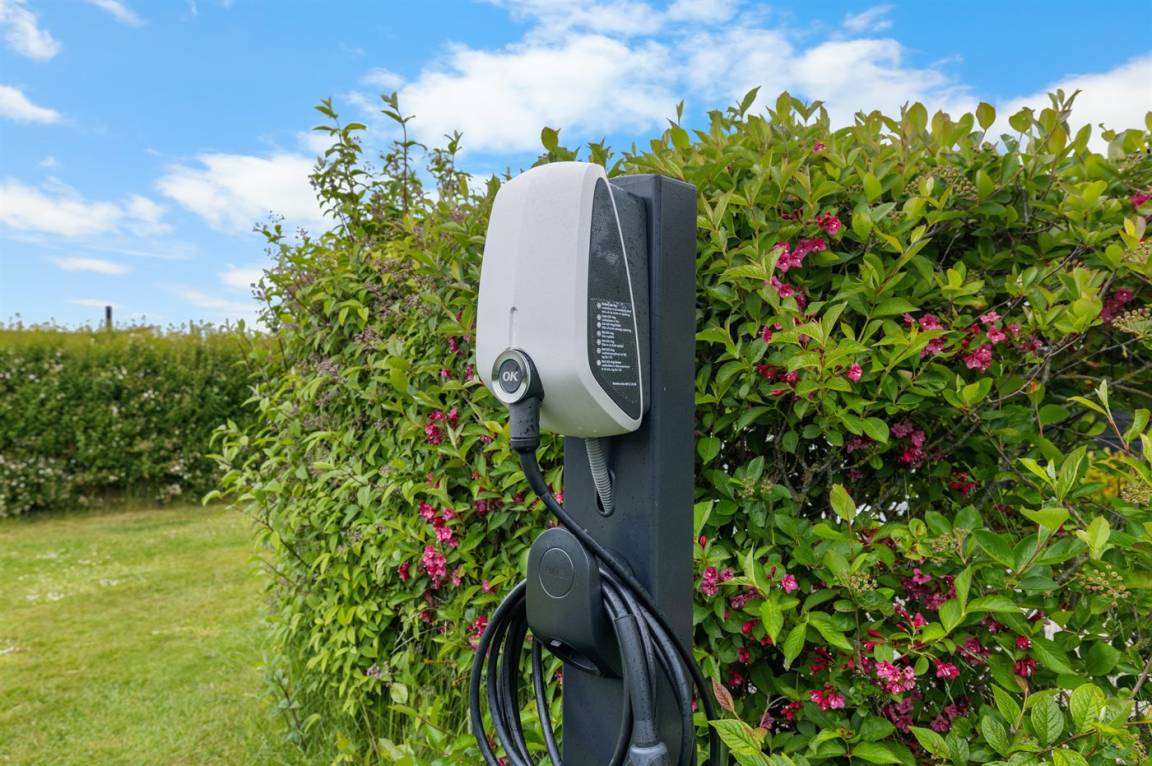 DraußenDie Ferienunterkunft liegt auf einem 715 m² großen Gartengrundstück. Die Entfernung zum Meer beträgt 400 m. Die nächste Einkaufsmöglichkeit liegt 6000 m entfernt. In einem Abstand von 6500 m gibt es einen Golfplatz. Es steht ein offenes Terrassenareal zur Verfügung. Außerdem gibt es überdachte Terrasse. Es steht ein Grill zur Verfügung. Es ist ein Ladestecker für Elektroautos installiert. Ladestecker Typ 2. Mit einer Ladeleistung von 11 kW. Parkplatz auf dem Grundstück.