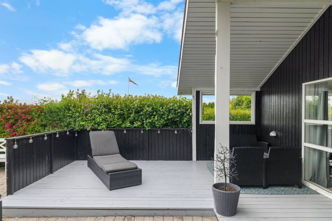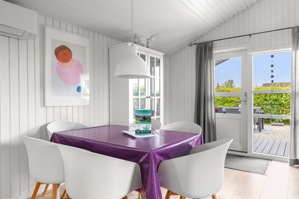 Dieses schöne Ferienhaus liegt im beliebten Feriengebiet Skåstrup Strand. Das Haus ist hell und freundlich eingerichtet und es gibt mehrere Terrassen, von denen die eine, die sich an der Vorderseite des Hauses befindet, teilweise überdacht ist.
