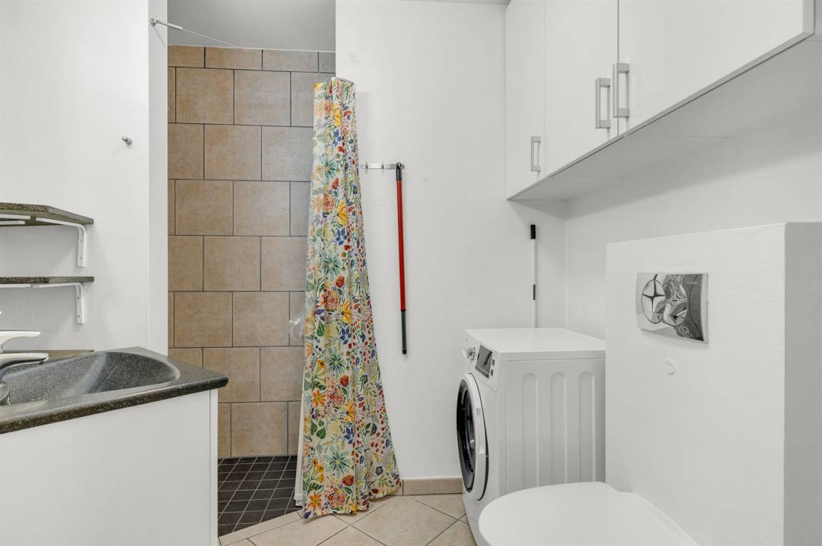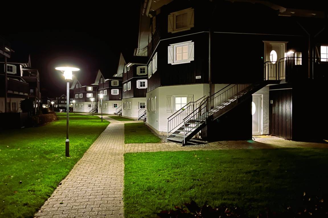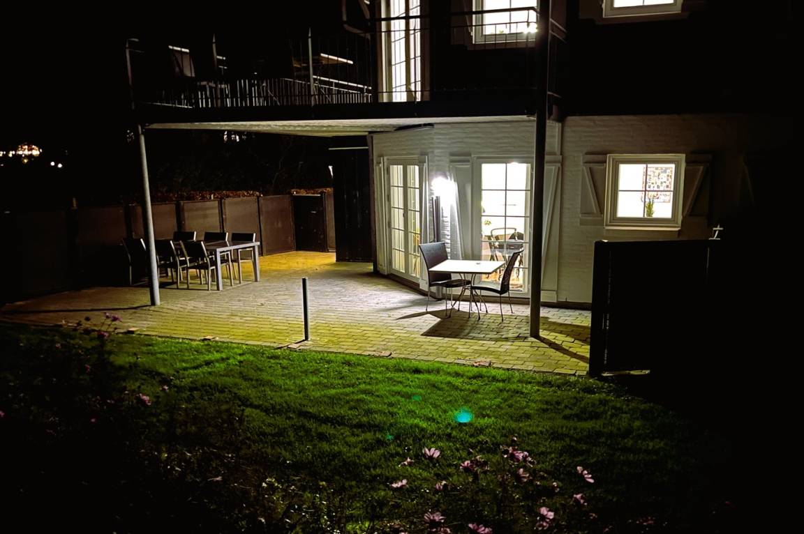 Die Wohnung befindet sich im Erdgeschoss und ist Teil eines größeren Komplexes namens „Tyrolerhusene", in dem es unter anderem einen gemeinsamen Spielplatz und weitere Einrichtungen gibt. Sie liegt am äußeren Rand des Geländes und bietet daher eine relativ ungestörte Lage.