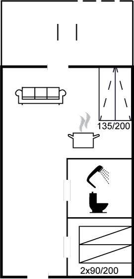 SchlafverhältnisseEs gibt einen Schlafraum. 2 Schlafplätze in Einzelbetten. 2 Schlafplätze auf einer Doppelschlafcouch. 2 von diesen Schlafplätzen befinden sich im Wohnzimmer.