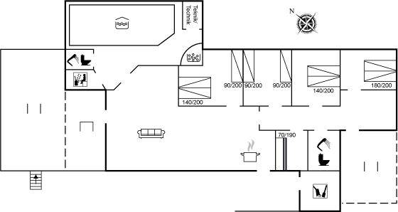 MultimedienIn der Ferienunterkunft gibt es 1 Fernseher mit Smart-TV. Mindestens 4 dänische Fernsehsender. 1-3 schwedische Fernsehsender. 1-3 norwegische Fernsehsender. Mindestens 4 deutsche Fernsehsender. Es steht kabellose Internetverbindung zur Verfügung.