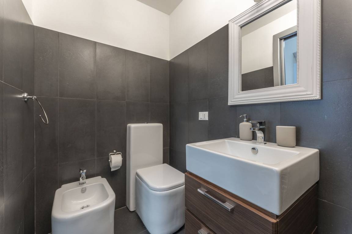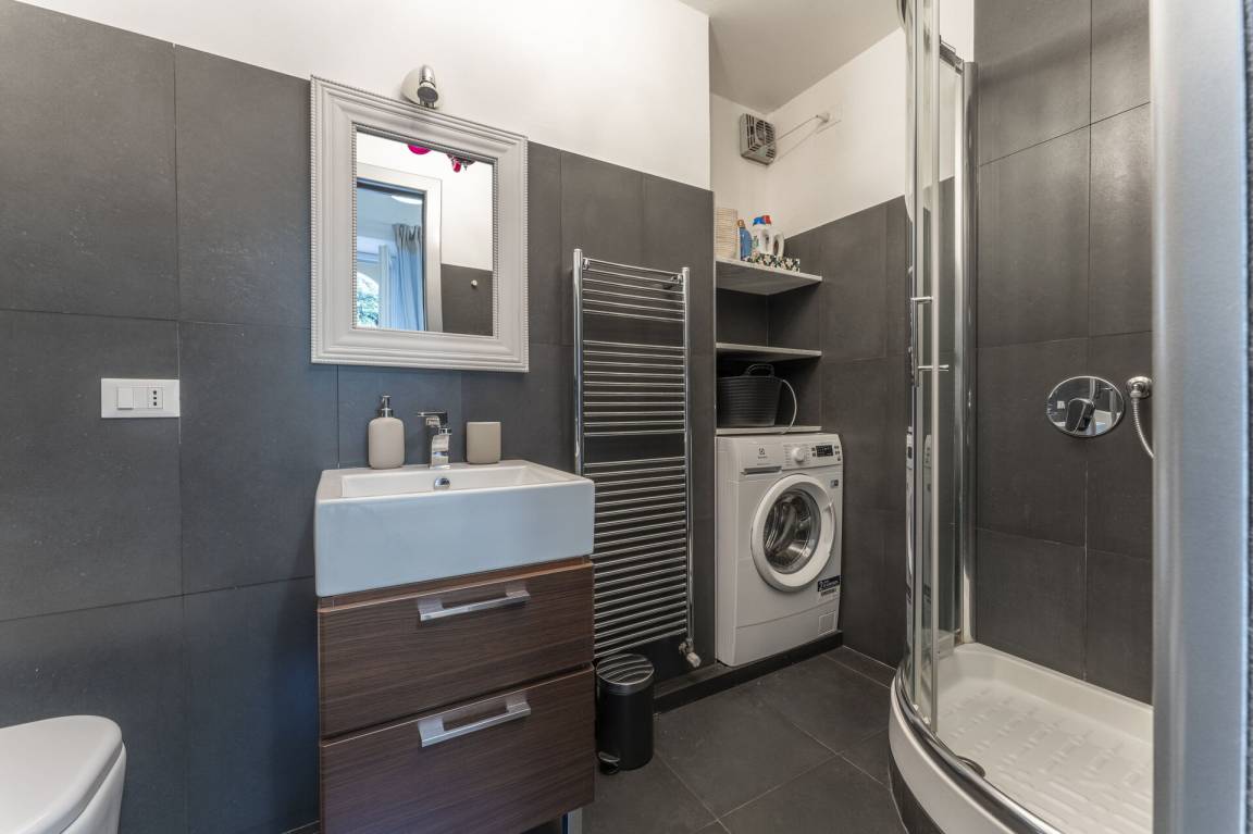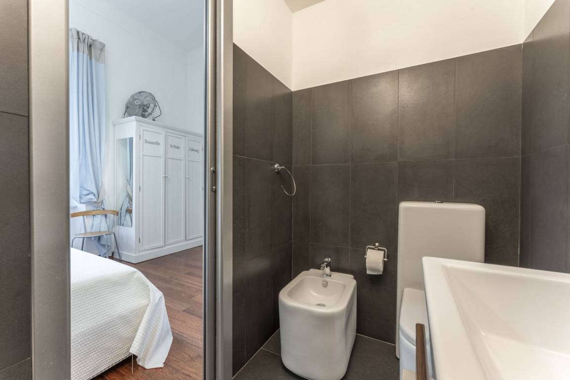 Badezimmer: Waschbecken, WC, Bidet, Dusche, Fön, Waschmaschine, WiFi Internet.
