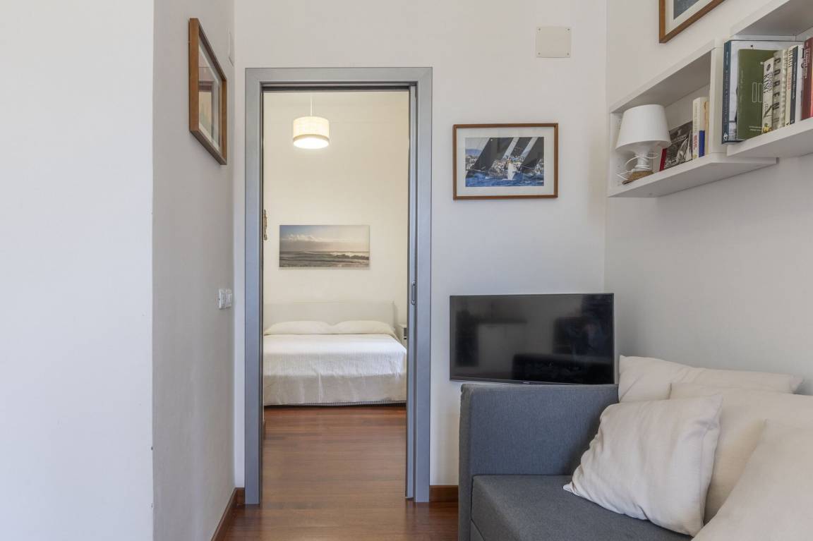 Wohnküche: gut ausgestattete Küche, Esstisch, Spülmaschine, Kühlschrank, Tiefkühler, Ofen, Sofa bed, WiFi Internet, Klimaanlage, TV, Ausgang auf den Balkon.
