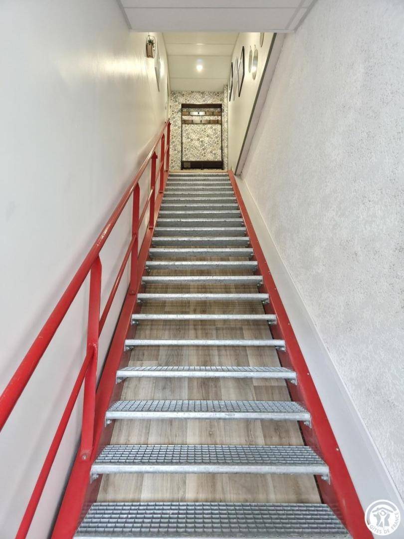 Die Unterkunft befindet sich im ersten Stock eines geschmackvoll renovierten ehemaligen Feuerwehrhauses und hat sich ihren Charme bewahrt. Das originale Treppenhaus, ein Zeugnis seiner Geschichte, prägt vom ersten Moment an die Atmosphäre: Authentizität und Charakter – jetzt noch verstärkt durch eine warme E