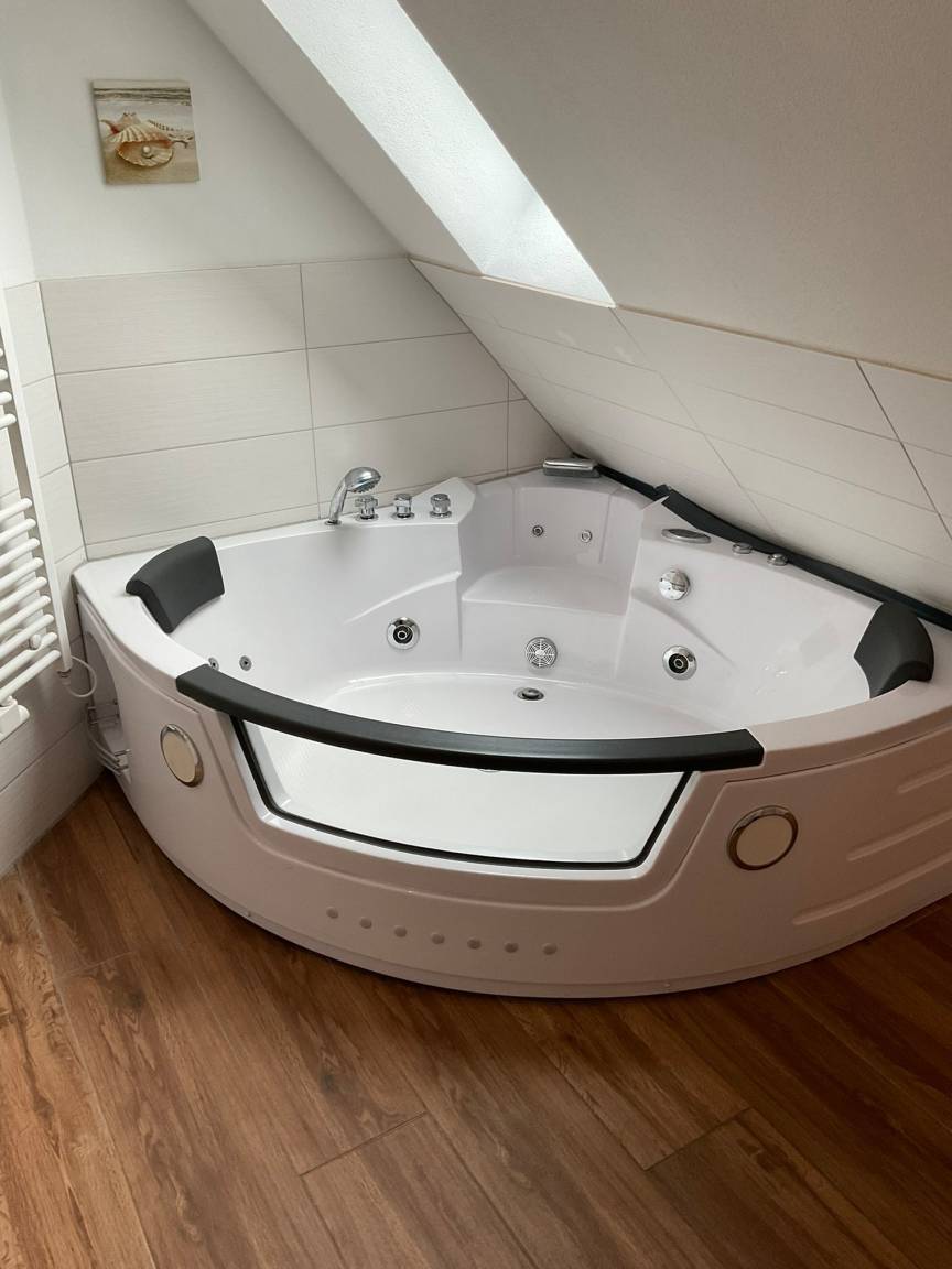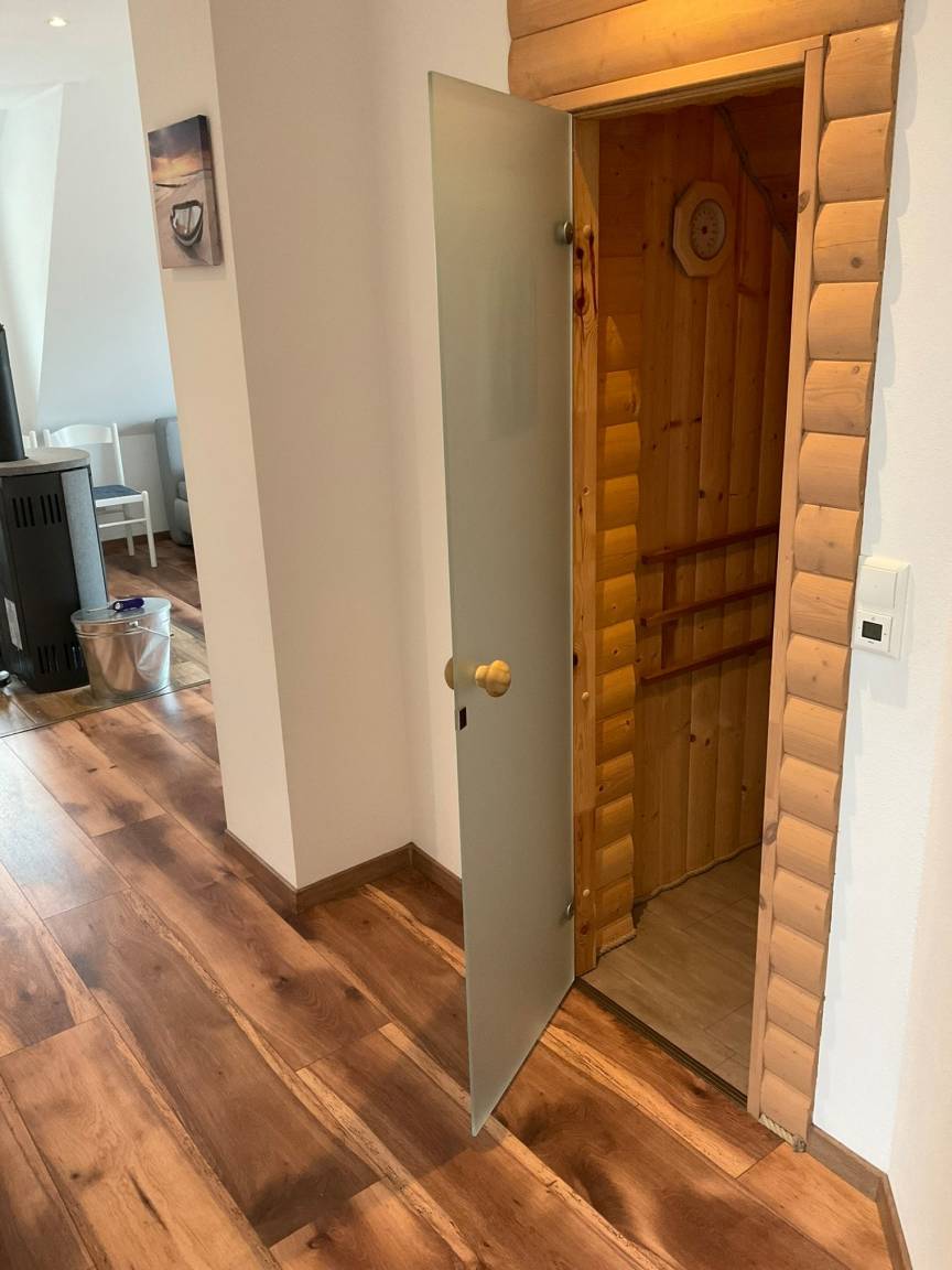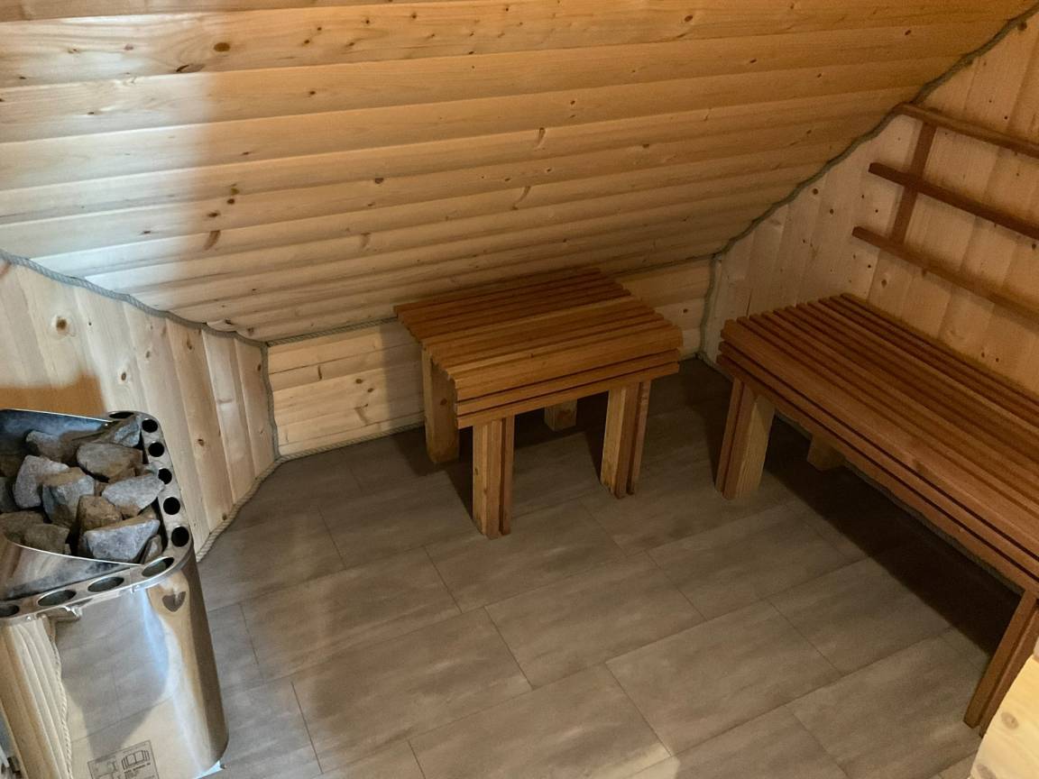 Ihre kleine Wellnessoase befindet sich im Badezimmer: entspannen Sie in der Sauna oder im Whirlpool. Anschließend können Sie es sich vor dem Kamin im Wohnbereich gemütlich machen. Ein Kaminofen trägt zusätzlich zur Gemütlichkeit bei. Die Räume lassen sich durch Außenjaloussinen verdunkeln.