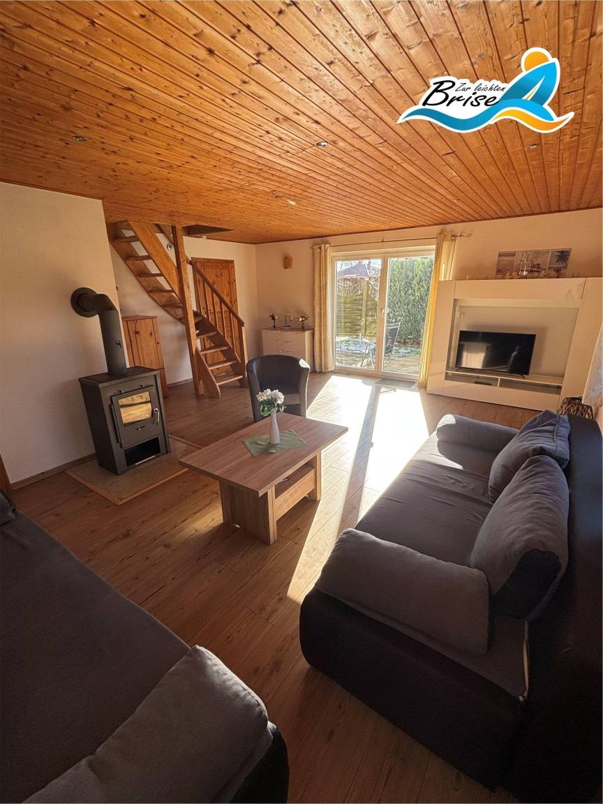 Im großen Wohnzimmer mit gemütlicher Sitzecke inklusive zweich Schlafcouchs für 2 Personen und SAT-TV können Sie bei schlechtem Wetter Ihre Lieblingssendung verfolgen, Gesellschaftsspiele spielen oder einfach vor dem Kamin in einem guten Buch versinken.