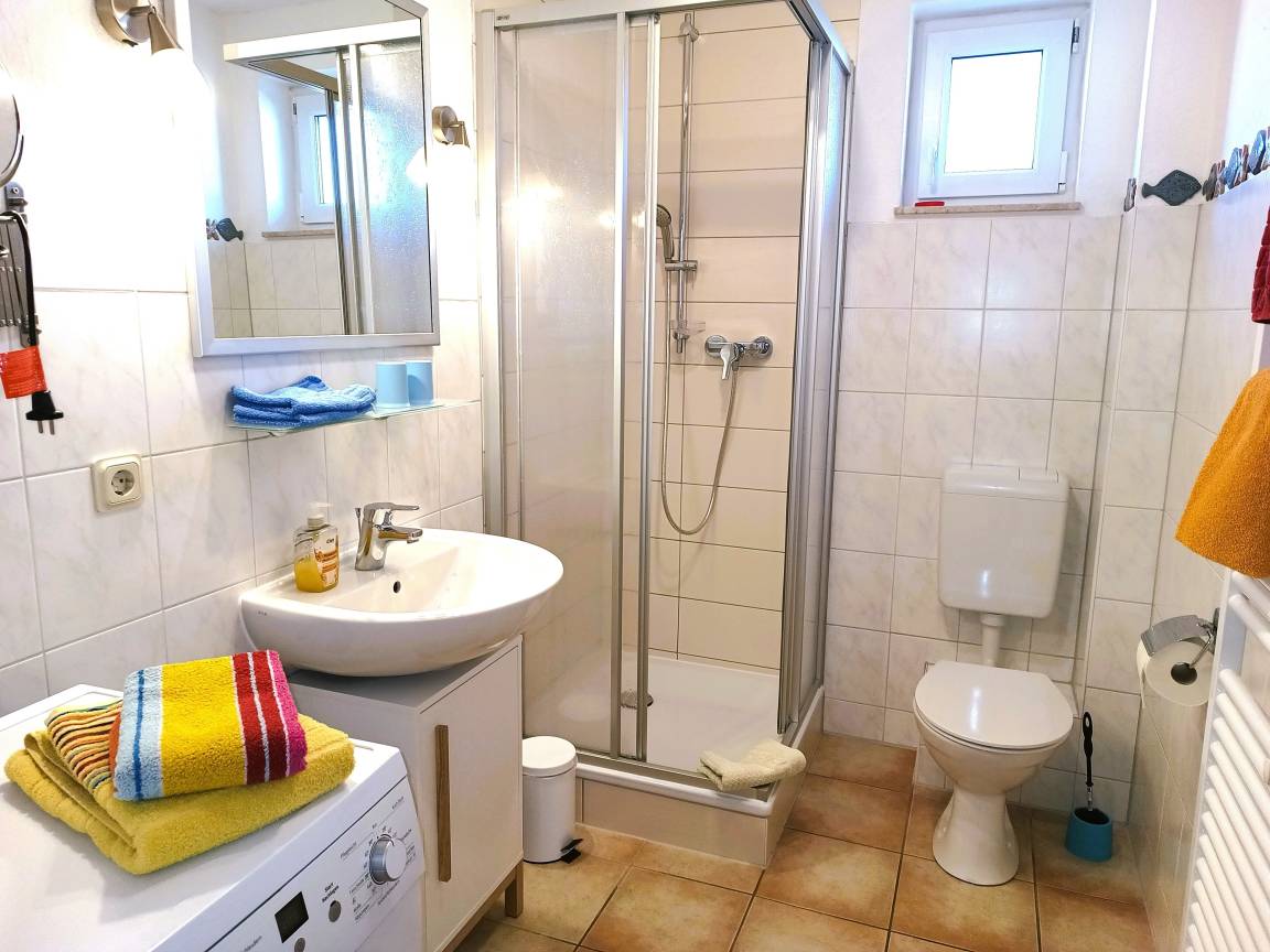Im Bad mit Dusche/WC und Handtuchheizung steht Ihnen eine Waschmaschine zur Verfügung.