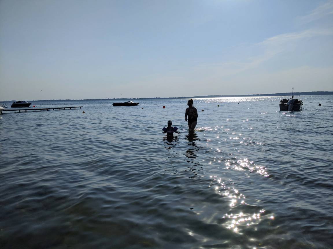 Die naturnahe und ruhige Umgebung lädt förmlich zum Wandern und zu langen Radtouren ein. In 5 Minuten mit dem Fahrrad, oder 20 Minuten zu Fuß, erreichen Sie den familienfreundlichen Badestrand am Ostsee-Salzhaff. Da das Wasser hier sehr flach ist, bietet es Kindern die ideale Badetiefe und angenehme Wassertemperaturen. Das Salzhaff ist ein Wassersportrevier. Es bereitet große Freude, den Kitern und Sufern bei Ihren atemberaubenden Stunts zuzuschauen. Sie könne auch selbst zum Bretthelden werden und bei der Kite- und Surfschule vor Ort einen Kurs meistern. Ein Spielplatz und Bistro befinden sich ebenfalls direkt am Strand.